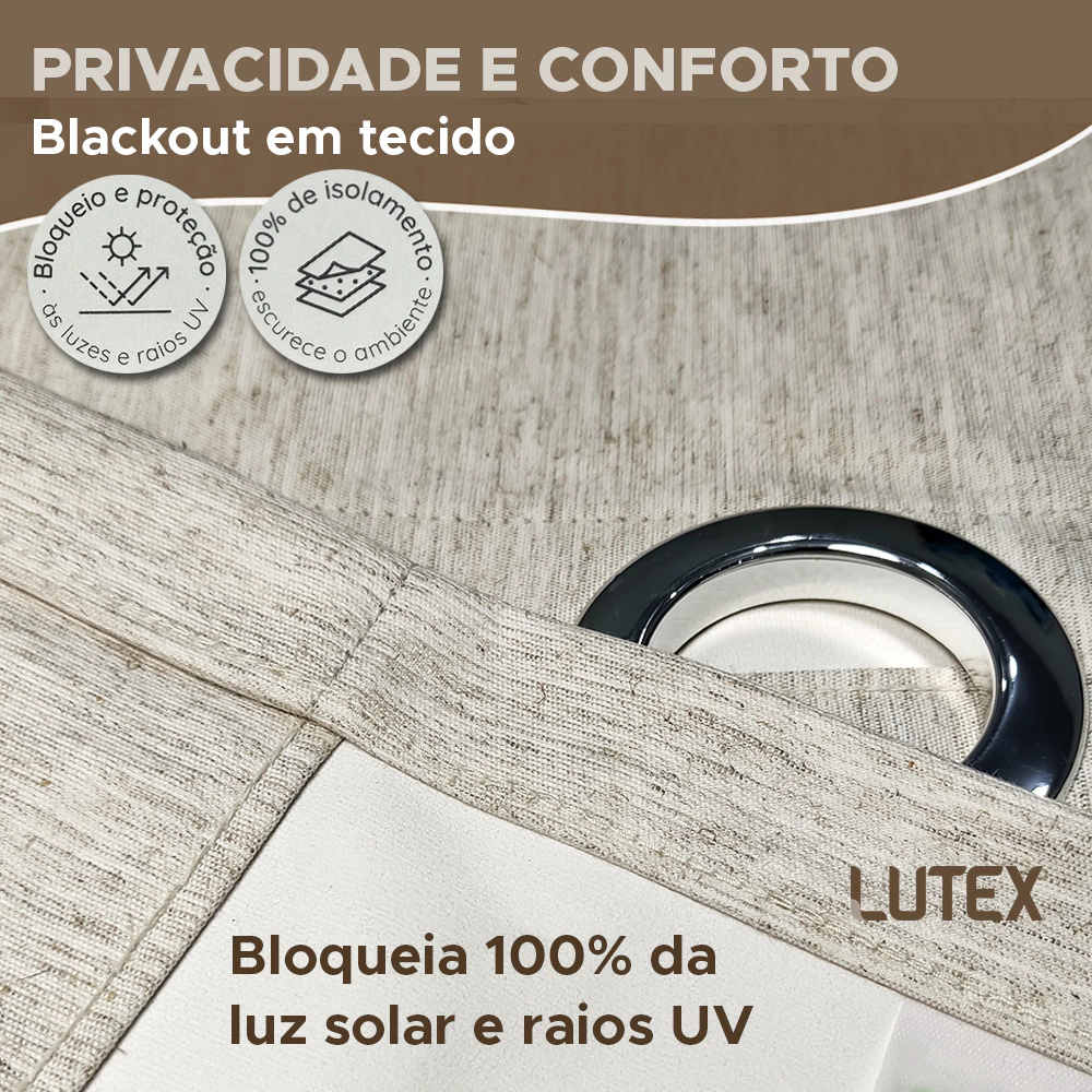 A cortina de blackout Aneliza Dohler da LUTEX é perfeita para isso! Ela vai fazer uma grande diferença na sua decoração, pois além de garantir privacidade e melhorar o conforto visual, irá proteger seus móveis e seu piso dos danos causados pelo excesso de sol, raios UV e calor, pois BLOQUEIA 100% DA LUZ SOLAR.