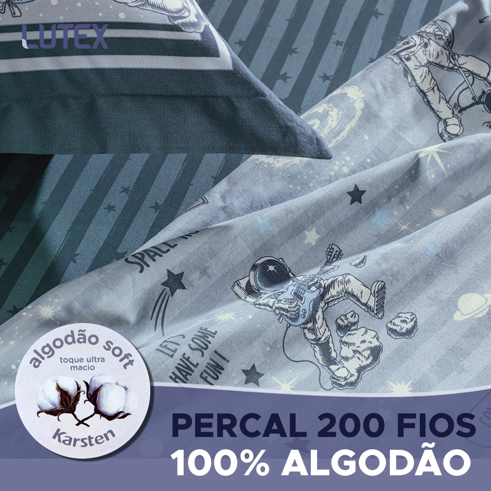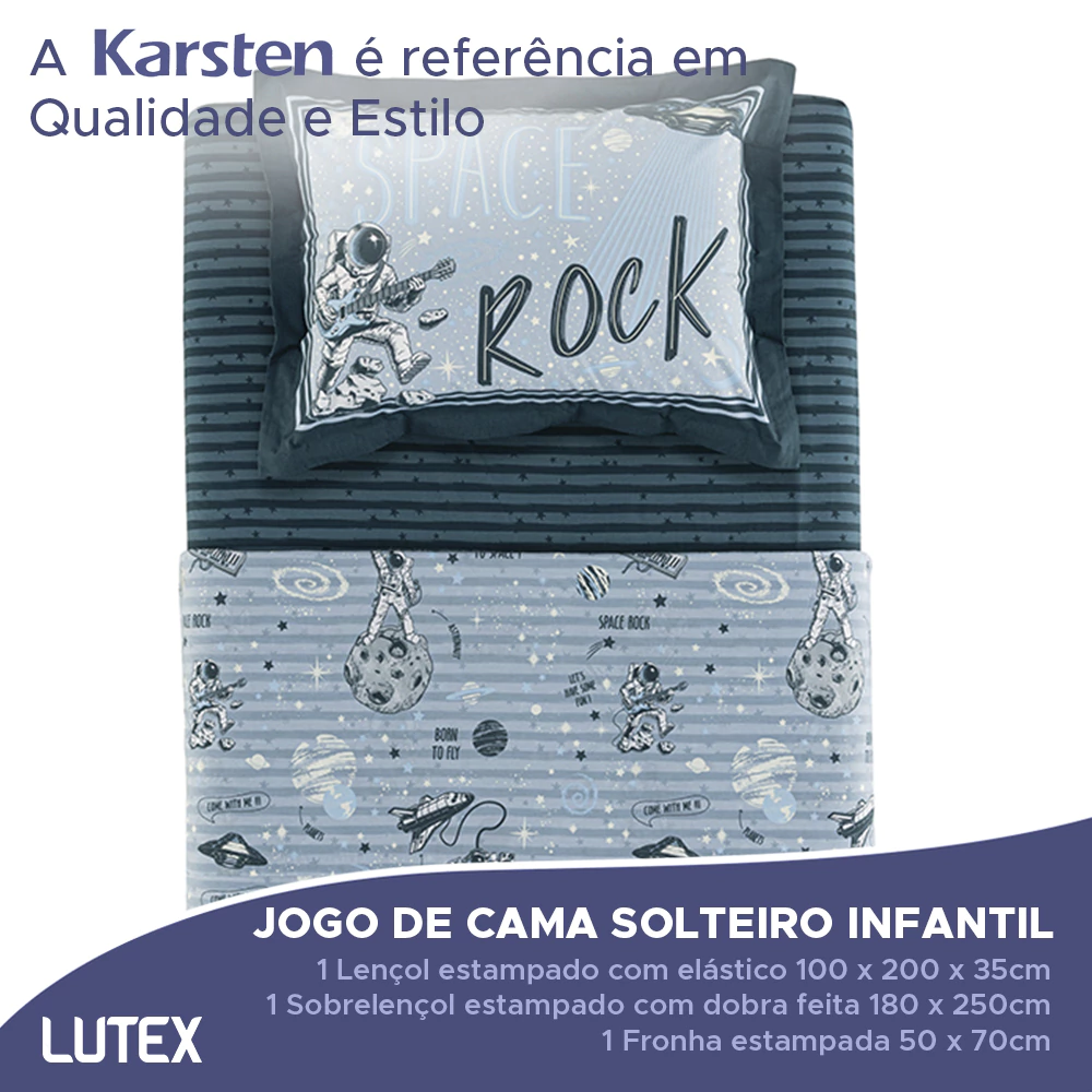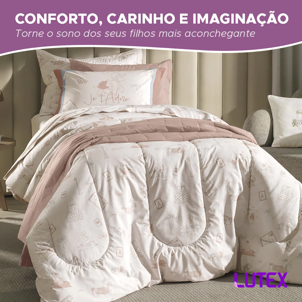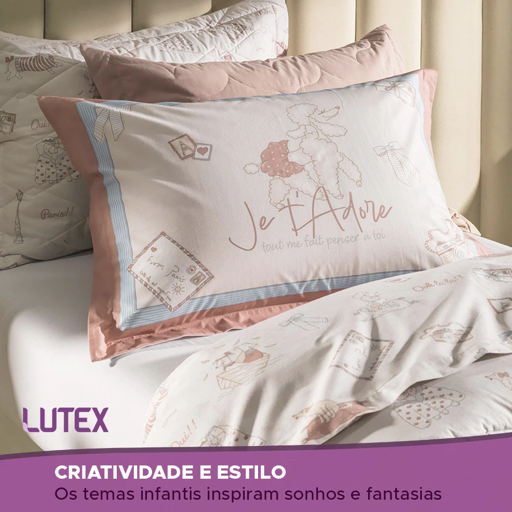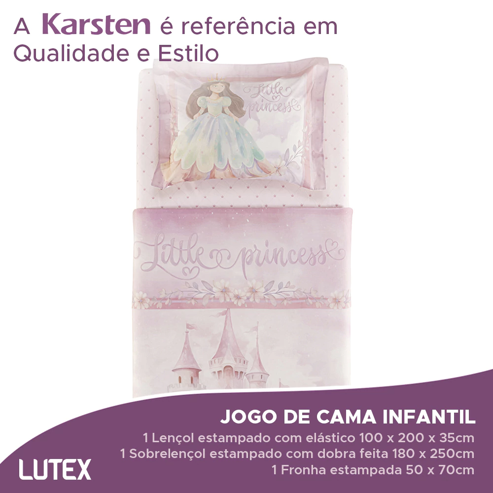 A Karsten pensou com muito carinho em sua linha infantil para tornar o sono de seus filhos mais aconchegante. Os temas infantis inspiram sonhos e fantasias. O toque do tecido 100% algodão percal 200 fios transforma a noite de sono ainda mais agradável com a maciez e o toque suave do algodão. O cobre leito acompanha o porta travesseiro e ambos possuem trabalhado em matelassê.