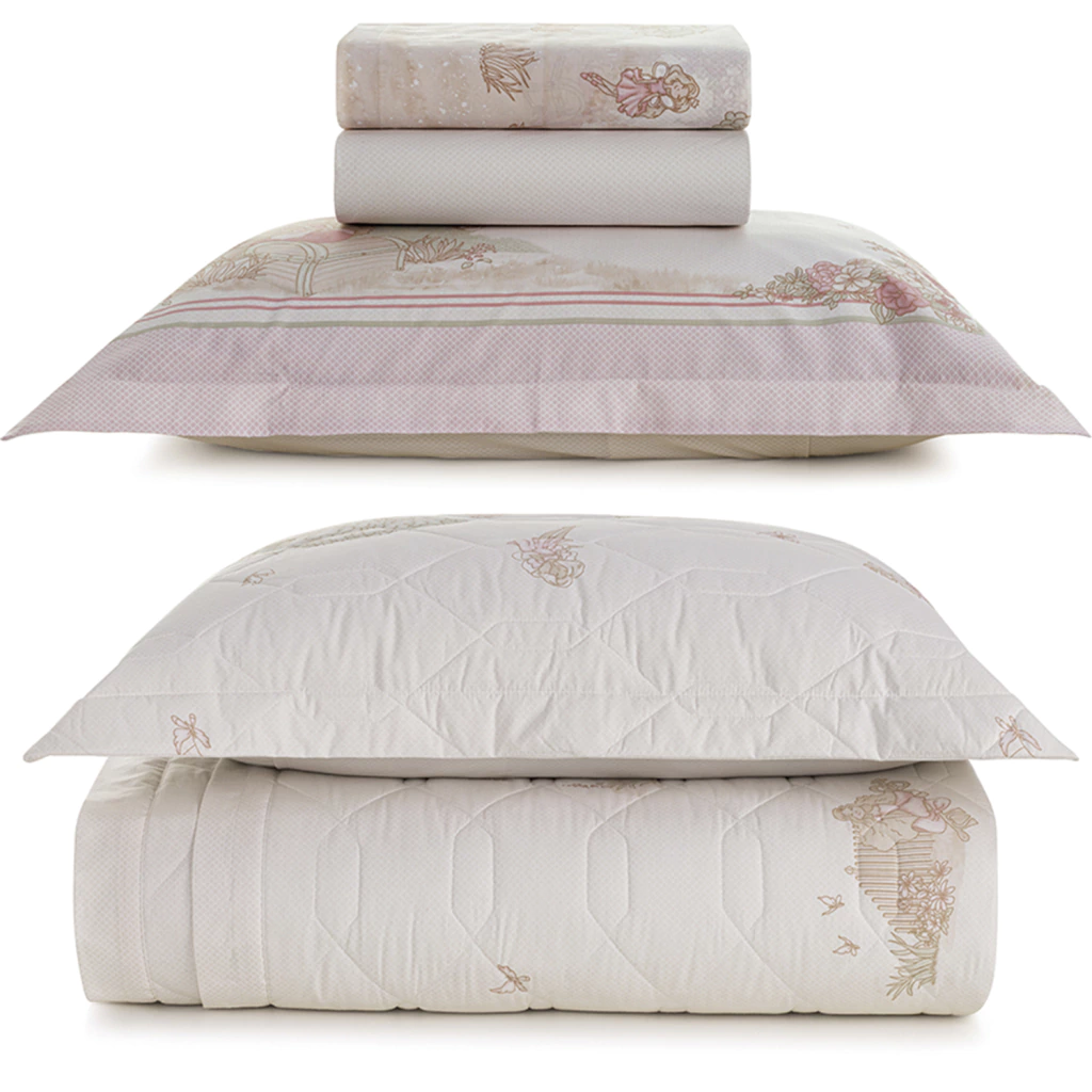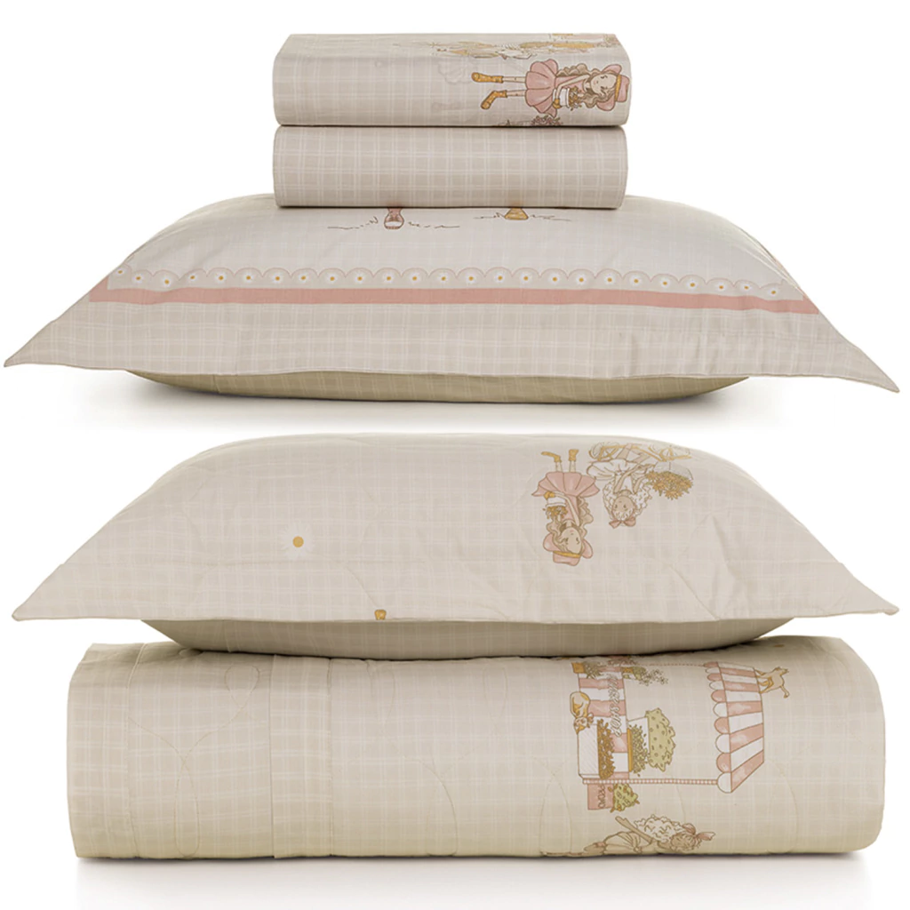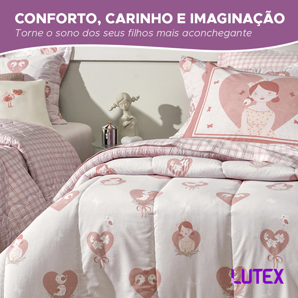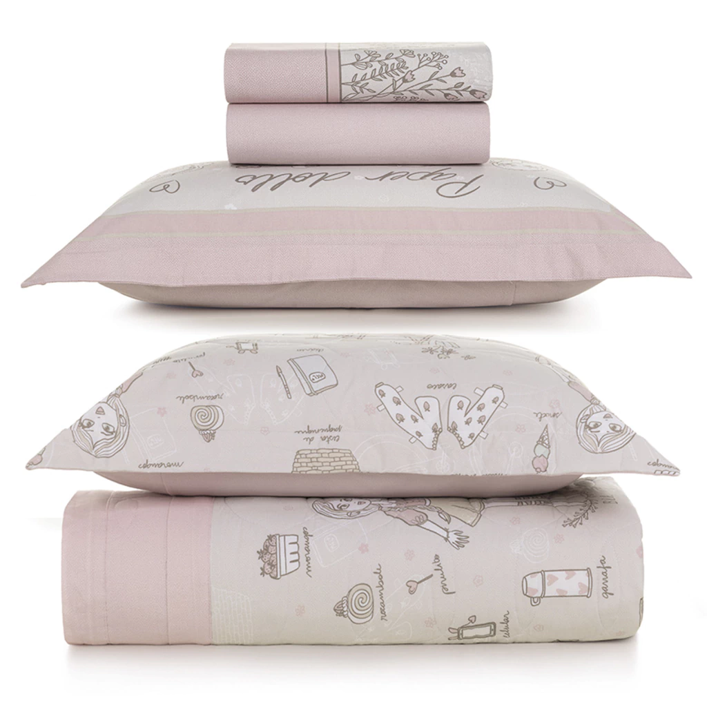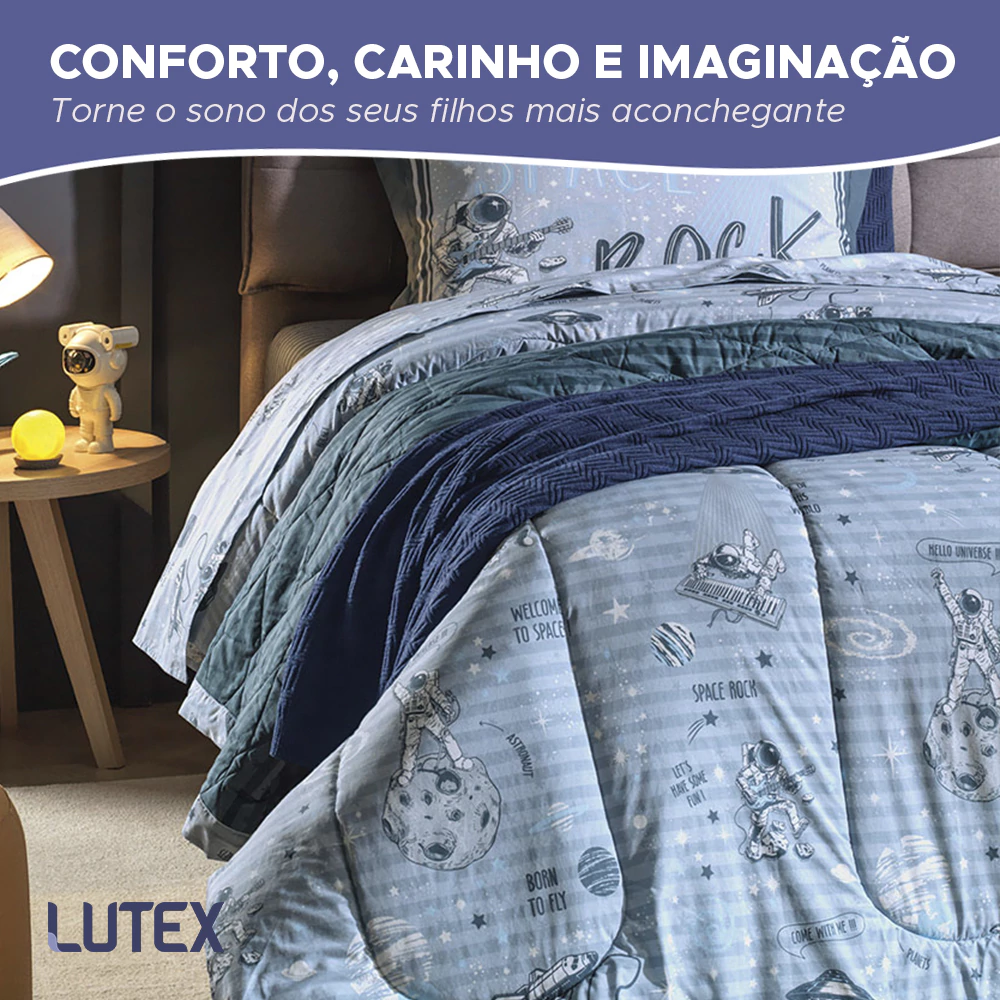 A Karsten pensou com muito carinho em sua linha infantil para tornar o sono de seus filhos mais aconchegante. Os temas infantis inspiram sonhos e fantasias. O toque do tecido 100% algodão percal 200 fios transforma a noite de sono ainda mais agradável com a maciez e o toque suave do algodão. O cobre leito acompanha o porta travesseiro e ambos possuem trabalhado em matelassê.