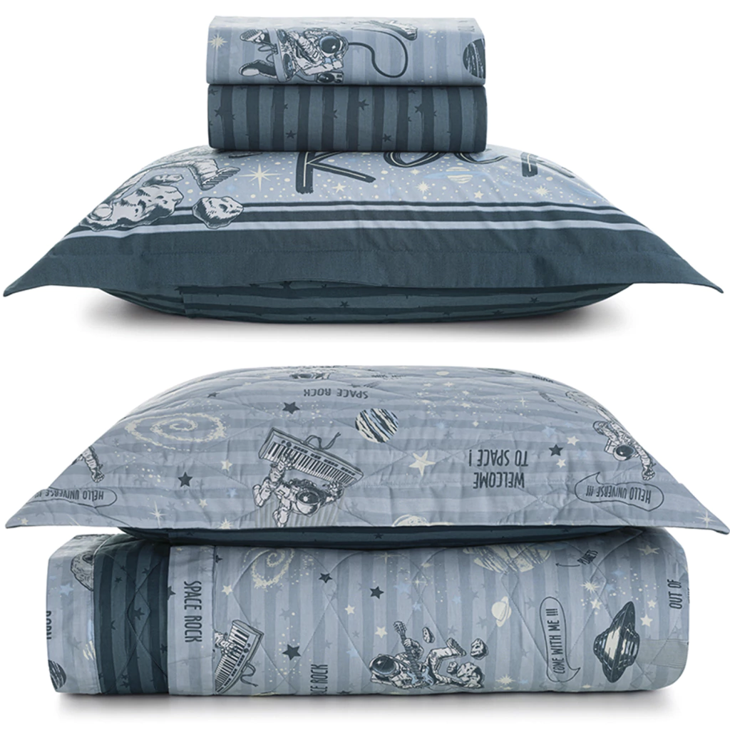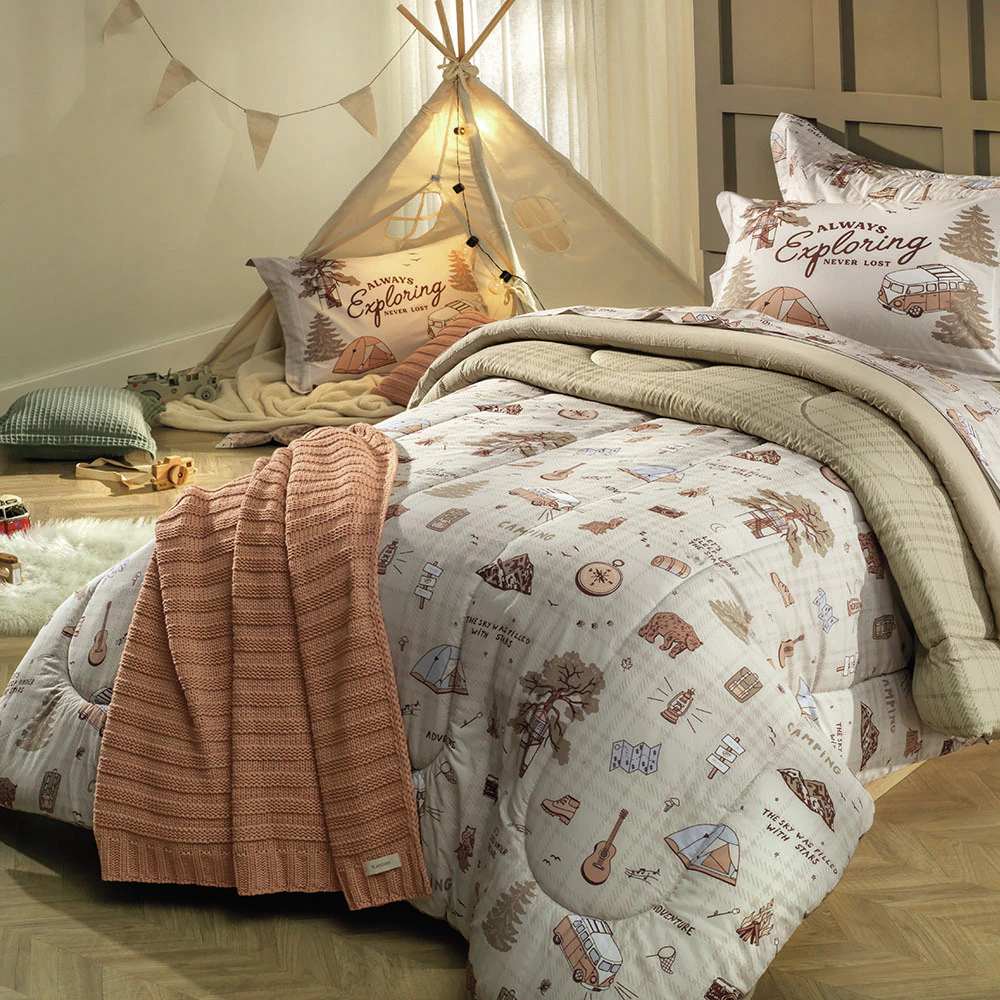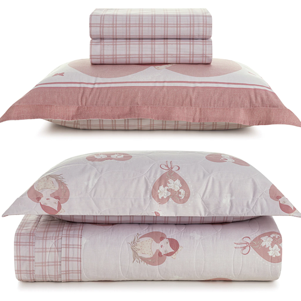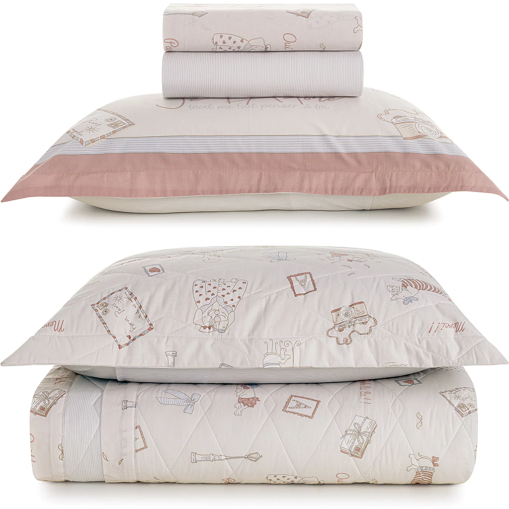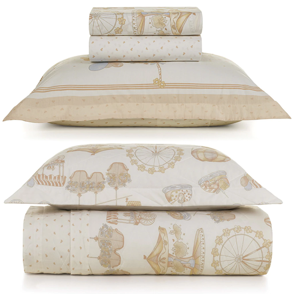 A Karsten pensou com muito carinho em sua linha infantil para tornar o sono de seus filhos mais aconchegante. Os temas infantis inspiram sonhos e fantasias. O toque do tecido 100% algodão percal 200 fios transforma a noite de sono ainda mais agradável com a maciez e o toque suave do algodão. O cobre leito acompanha o porta travesseiro e ambos possuem trabalhado em matelassê.