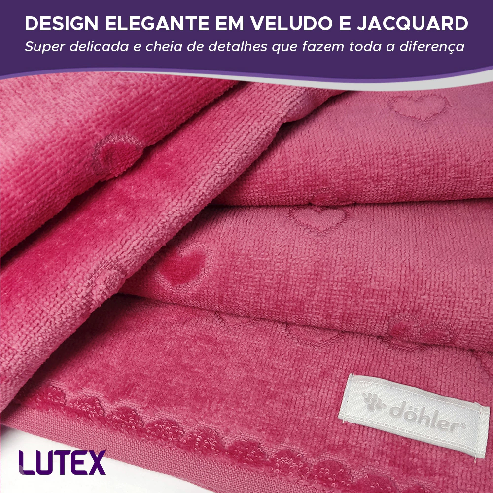 Volumosa e macia com qualidade e toque superior. Design em veludo e jacquard, destacando as cores clássicas e realçando assim a beleza e estilo da toalha.