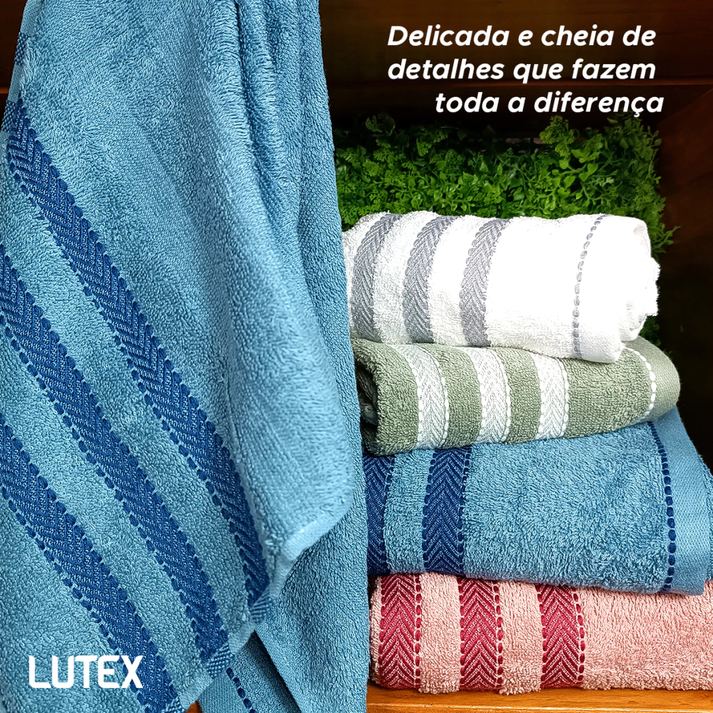 A linha de banho Corttex Asti é confeccionada em tecido 100% algodão, conferindo qualidade e maciez. Seu design elegante em jacquard conta com listras em alto relevo em seu corpo, deixando-a delicada e cheia de detalhes que fazem toda a diferença. Além disso, ela é pré-lavada e pré-encolhida, evitando encolhimento após a lavagem.