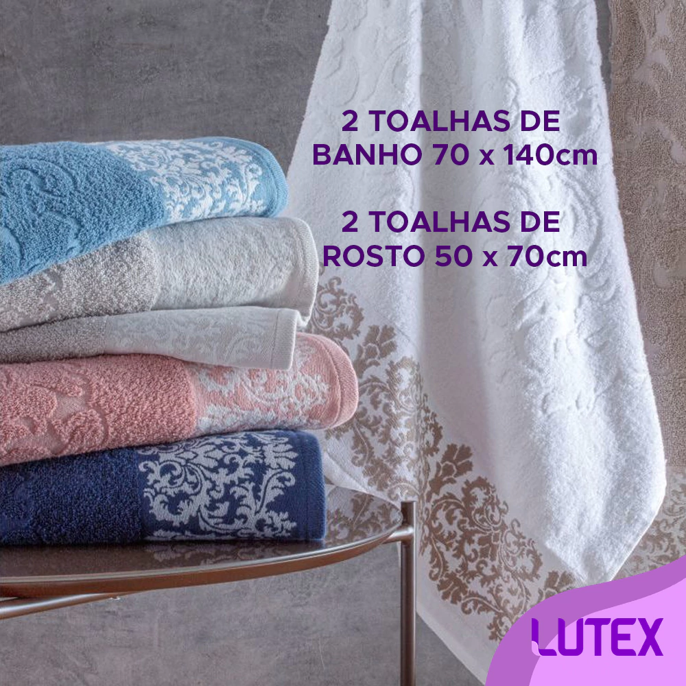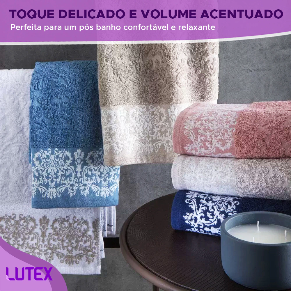 - 2 Toalhas de Banho Corttex Medalhão Jacquard Alta Absorção Algodão Pré-Lavada Pré-Encolhida 70 x 140