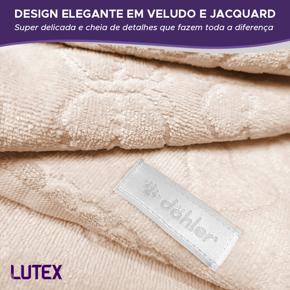 Volumosa e macia com qualidade e toque superior. Design em veludo e jacquard, destacando as cores clássicas e realçando assim a beleza e estilo da toalha.
