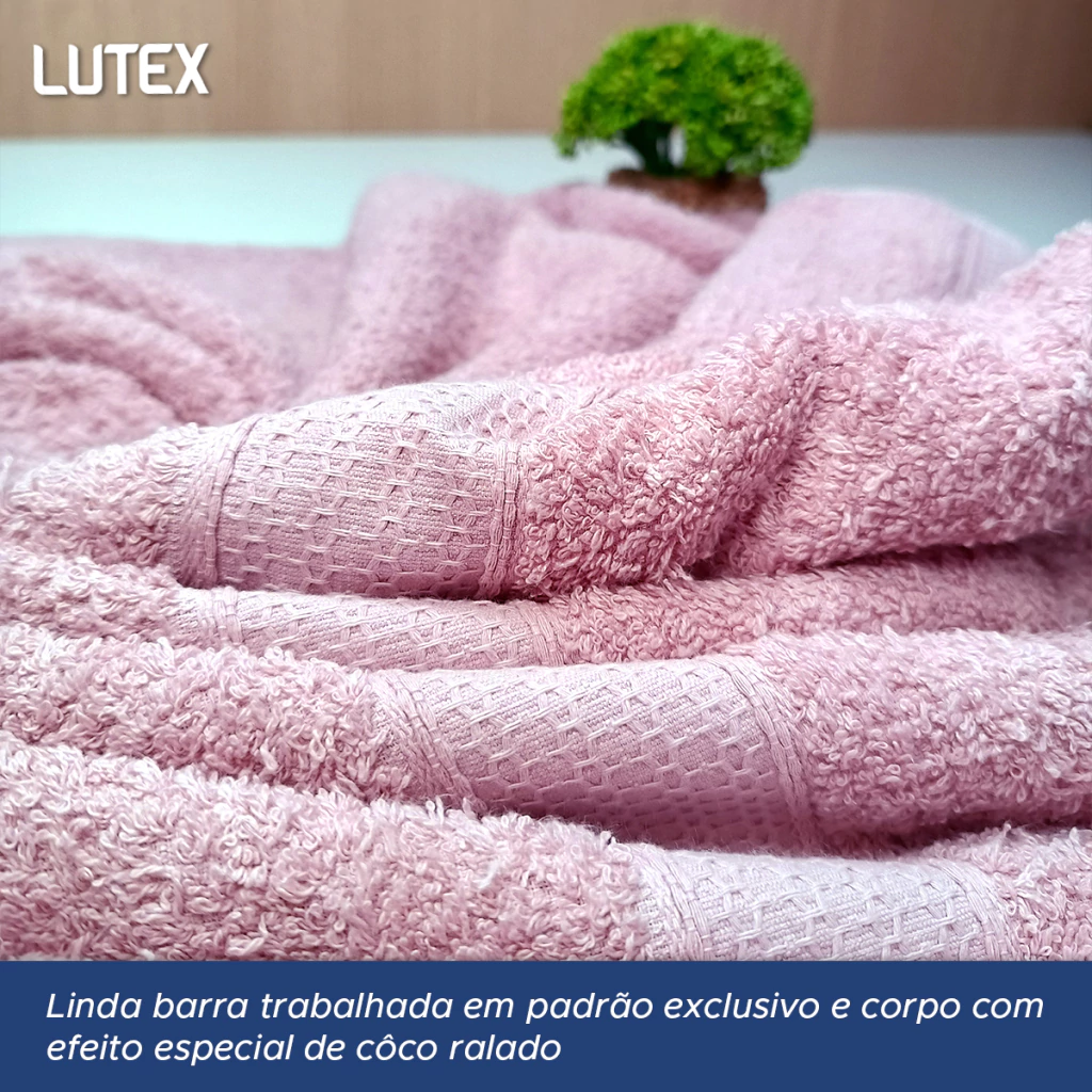 Seu design elegante com felpas ultra macias conta com barra trabahada em padrão exclusivo, corpo com um inesquecível efeito especial de côco ralado, que vai te proporcionar uma delicada sensação ao massagear seu corpo no pós banho. Delicada e cheia de detalhes que fazem toda a diferença.