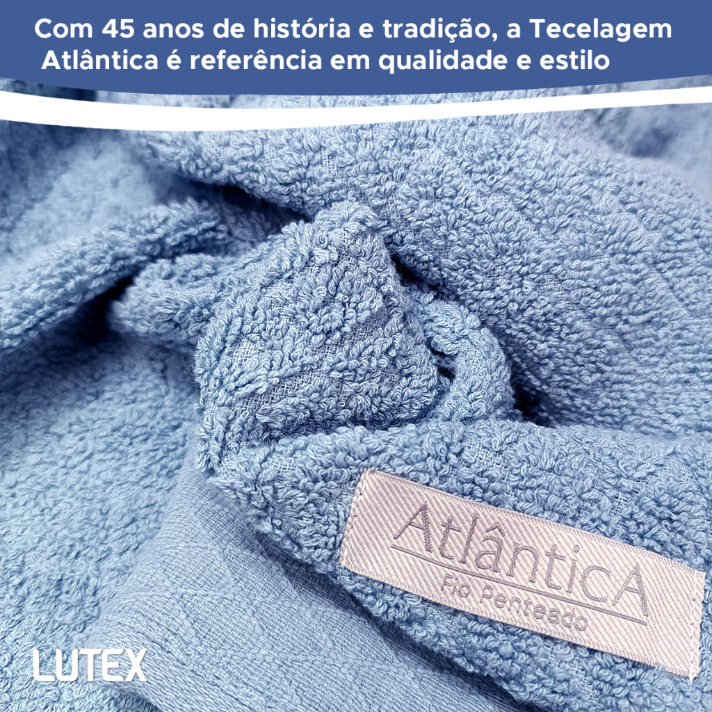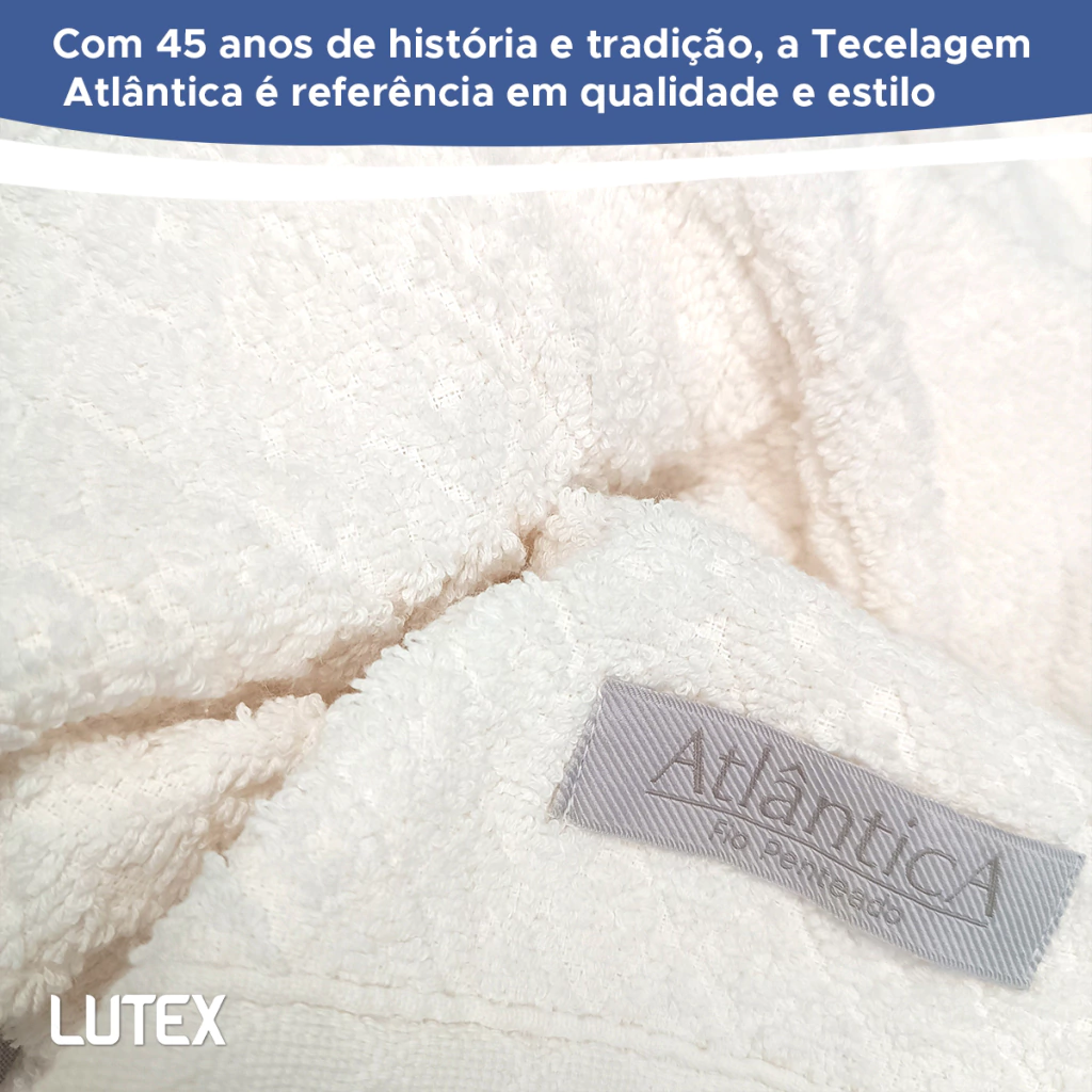 Confeccionada em 100% ALGODÃO Fio penteado, com gramatura de 430g/m² da linha mais nobre da Atlântica, ela é pré-lavada e pré encolhida, o que garante maior absorção, volume, maciez e conforto para seu banho. Você leva para seu banheiro muito mais qualidade, além de beleza e elegância à decoração.
