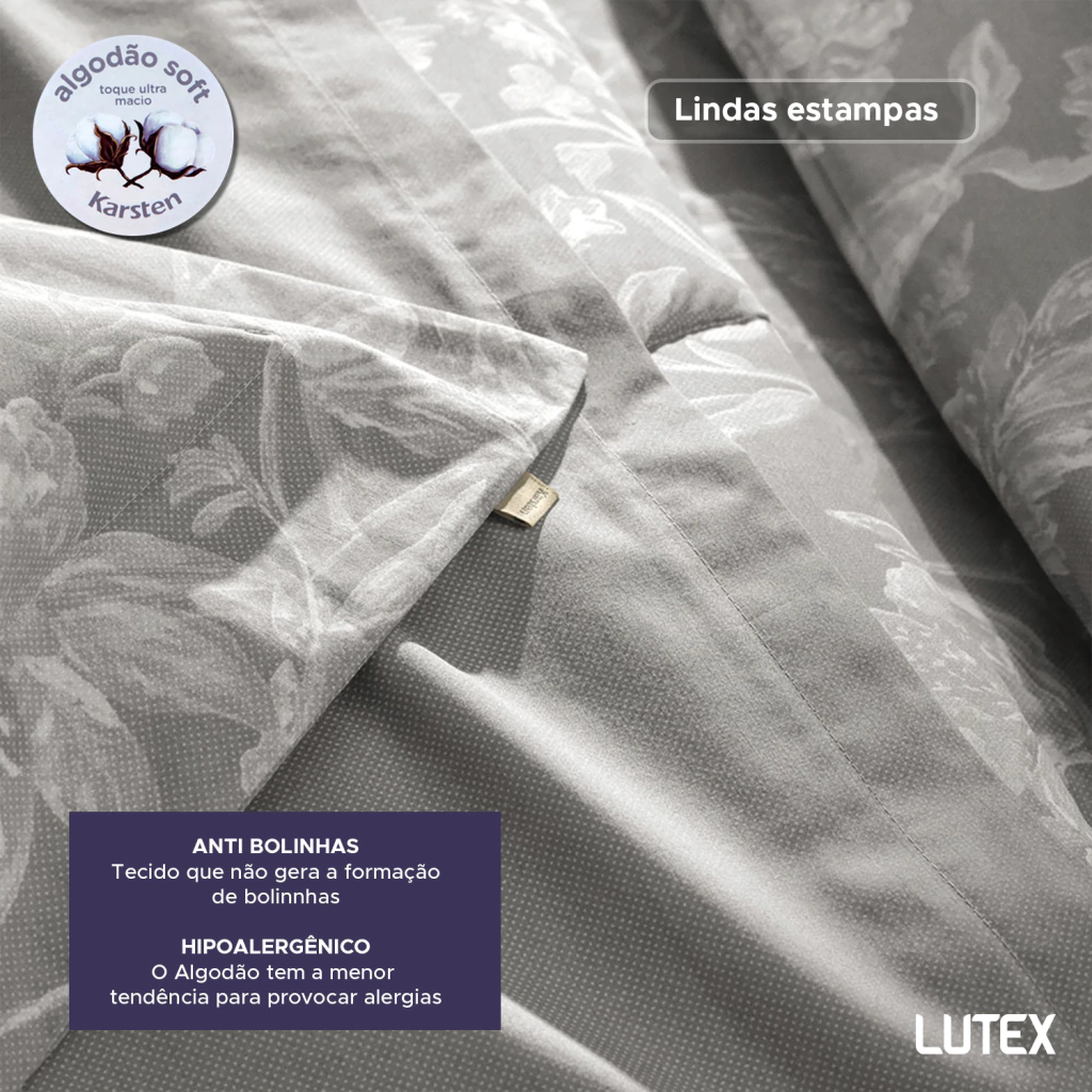 A linha de cama Karsten 200 Fios Percal 100% Algodão Dobra Feita tem estampas em cores neutras, que transmitem serenidade e frescor no olhar. Este jogo leva o selo de algodão soft pois é fabricado em um processo inovador de acabamento têxtil e finalizado em calandra, que resulta em conforto que remete a aconchego e tranquilidade, criando um ambiente propício ao descanso e noites revigorantes.