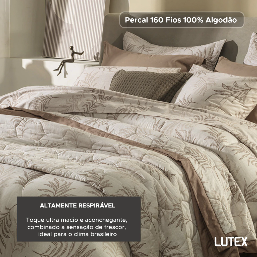 O tecido é confeccionado em Percal 160 Fios 100% Algodão, um tecido de trama bem fechada que resulta em toque ultra macio e aconchegante, combinado a sensação de frescor, ideal para o clima brasileiro.