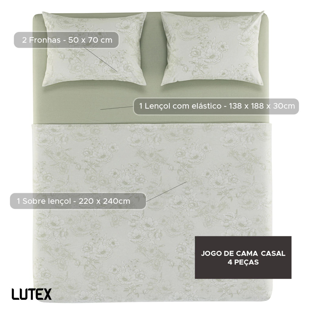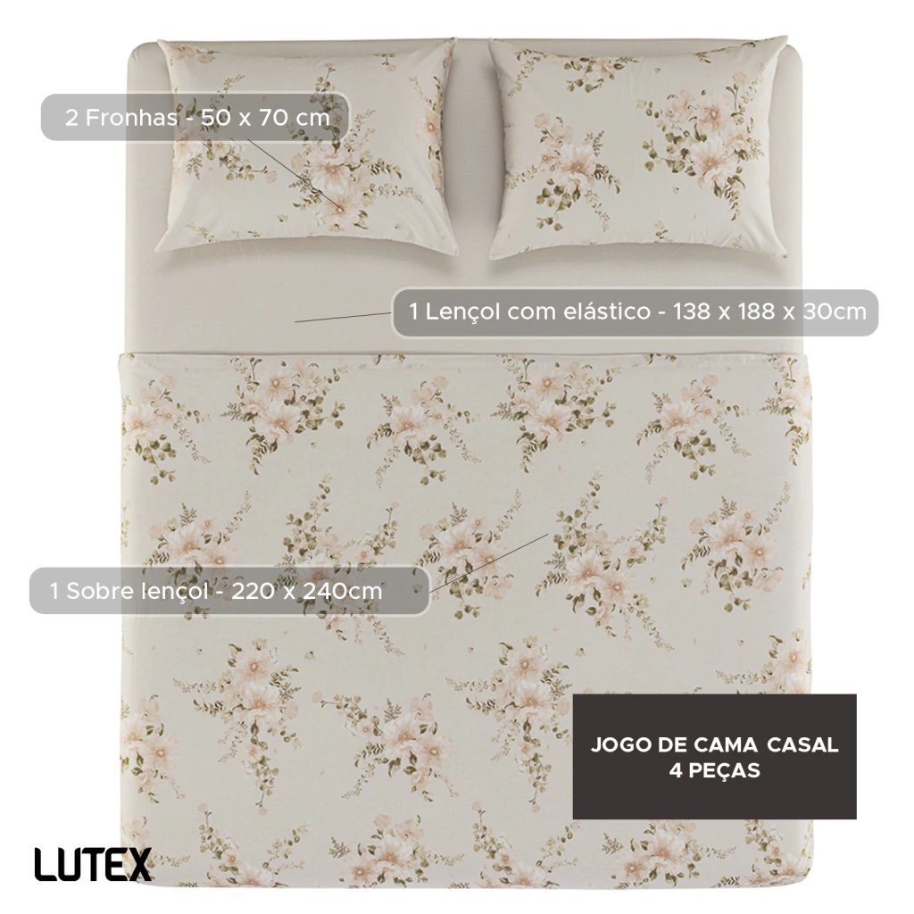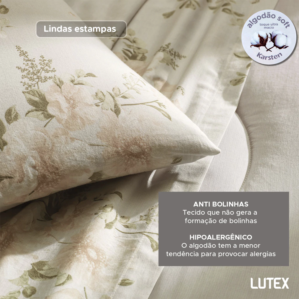 - 1 Lençol Casal com elástico estampado 100% Algodão 160 fios - 138 x 188 x 30 cm