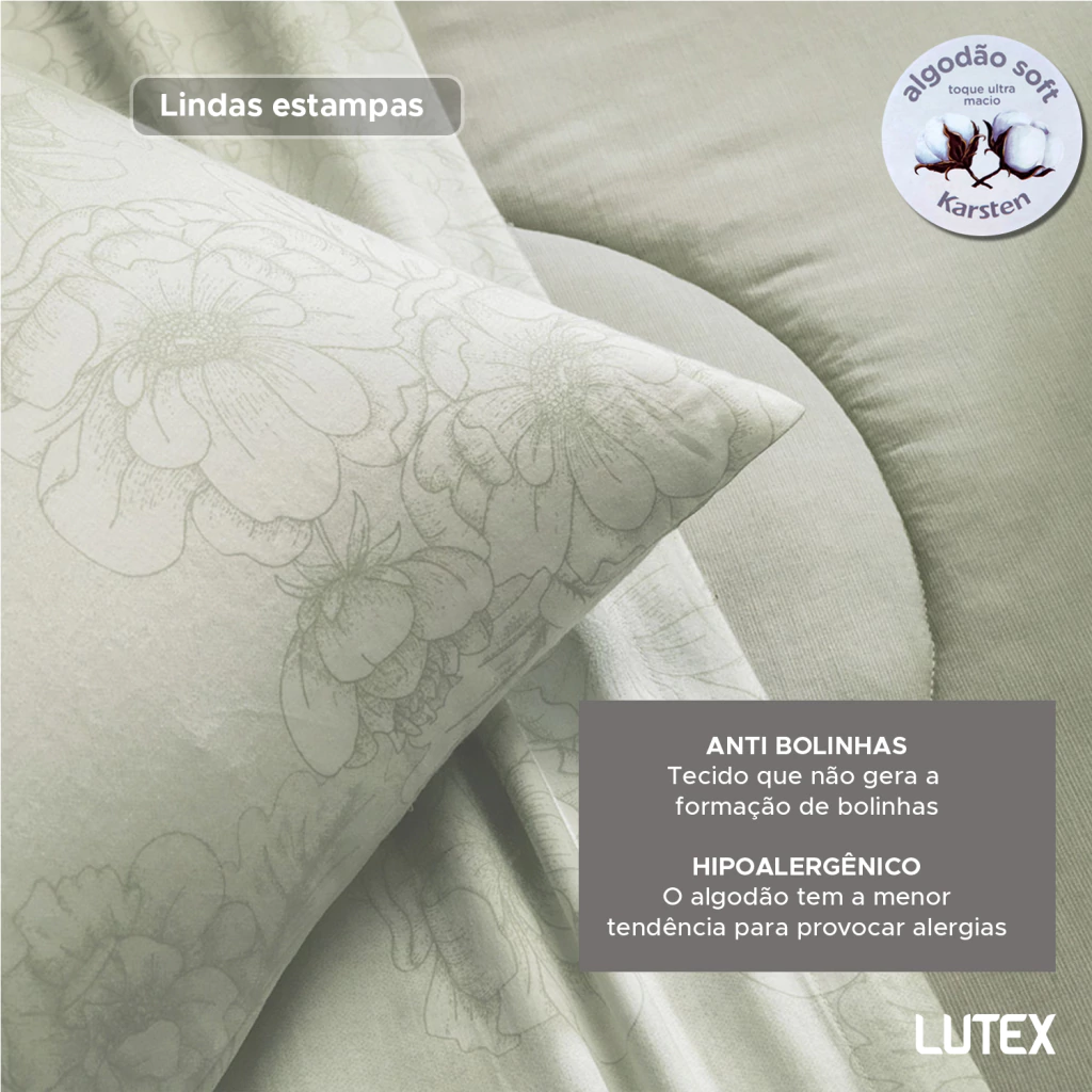 A linha de cama Karsten 160 Fios Percal 100% Algodão tem estampas em cores neutras, que transmitem serenidade e frescor no olhar. Este jogo leva o selo de algodão soft pois é fabricado em um processo inovador de acabamento têxtil e finalizado em calandra, que resulta em conforto que remete a aconchego e tranquilidade, criando um ambiente propício ao descanso e noites revigorantes.