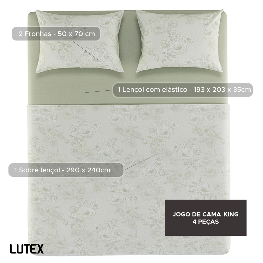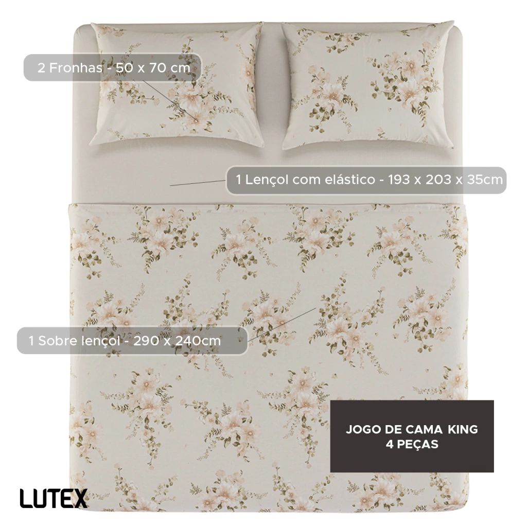 - 1 Lençol King com elástico estampado 100% Algodão 160 fios - 193 x 203 x 35 cm