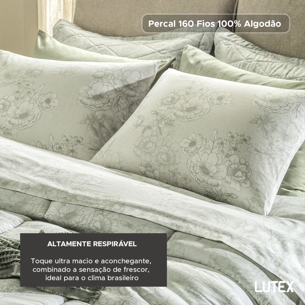 O tecido é confeccionado em Percal 160 Fios 100% Algodão, um tecido de trama bem fechada que resulta em toque ultra macio e aconchegante, combinado a sensação de frescor, ideal para o clima brasileiro.