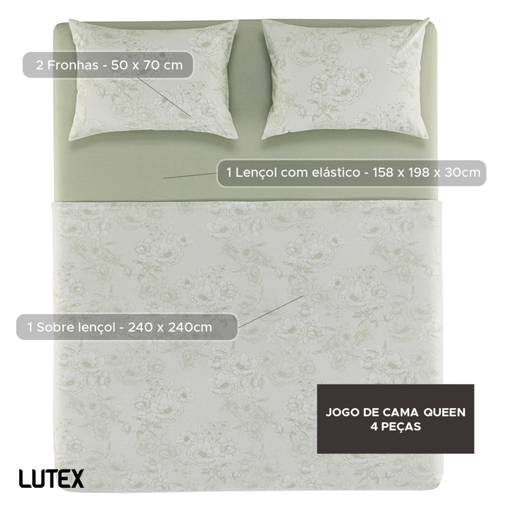 - 1 Lençol Queen com elástico estampado 100% Algodão 160 fios - 158 x 198 x 30 cm