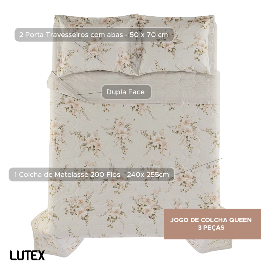 - 1 Colcha Matelasse Queen Dupla Face estampado 100% Algodão 160 fios - 240 x 255 cm
