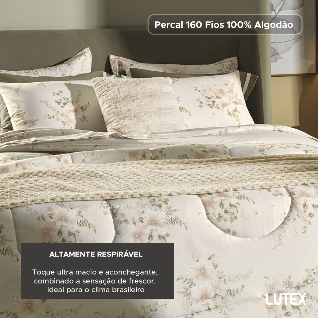 O tecido é confeccionado em Percal 160 Fios 100% Algodão, um tecido de trama bem fechada que resulta em toque ultra macio e aconchegante, combinado a sensação de frescor, ideal para o clima brasileiro.