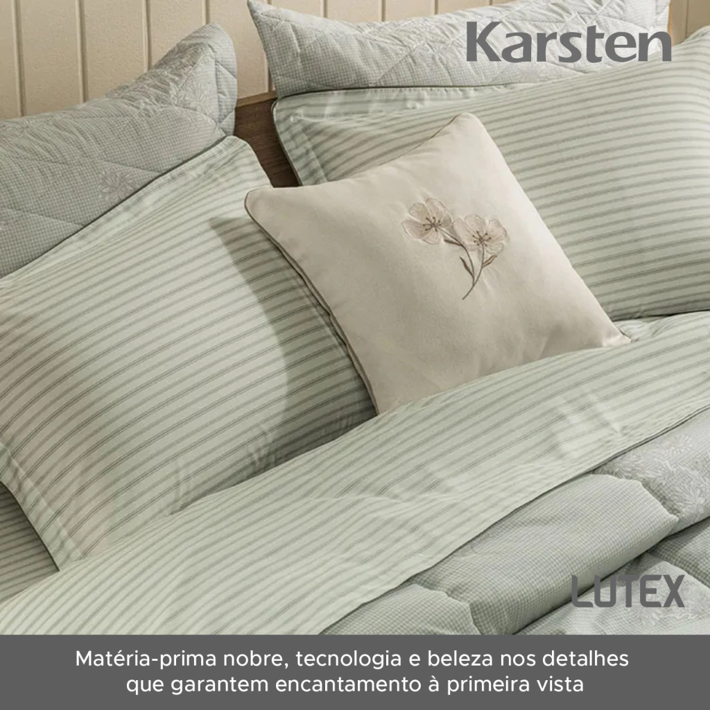 A linha de cama Karsten da LUTEX é resultado da combinação entre matéria-prima nobre, tecnologia e beleza nos detalhes que garantem encantamento à primeira vista.