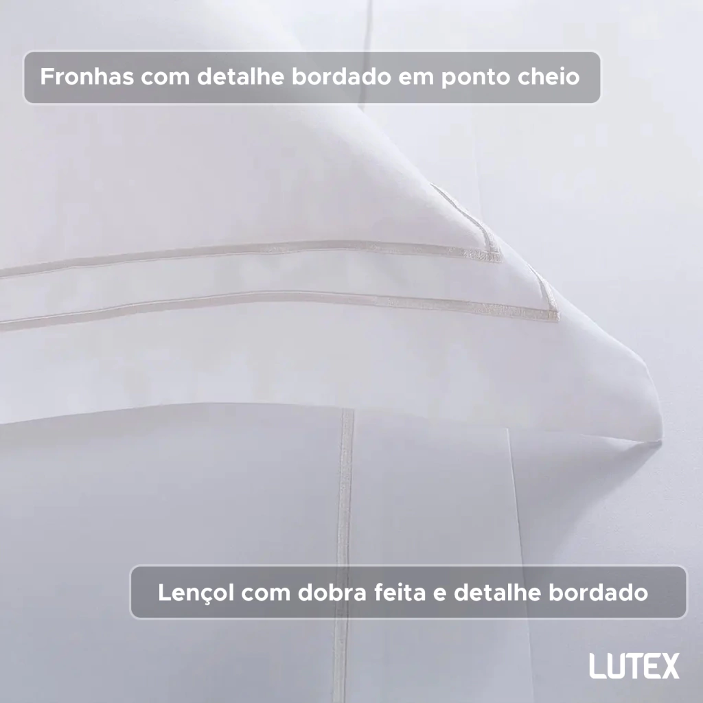 O jogo conta com lençóis e fronhas de 3 abas com acabamento em ponto cheio, e possui dobra feita, que deixa sua cama com um visual mais bonito e arrumado. Suas cores neutras facilitam a combinação com outros itens e são peças clássicas que nunca sairão da moda. Além disso ele possui acabamento anti-pilling, aumentando a durabilidade e qualidade do jogo.