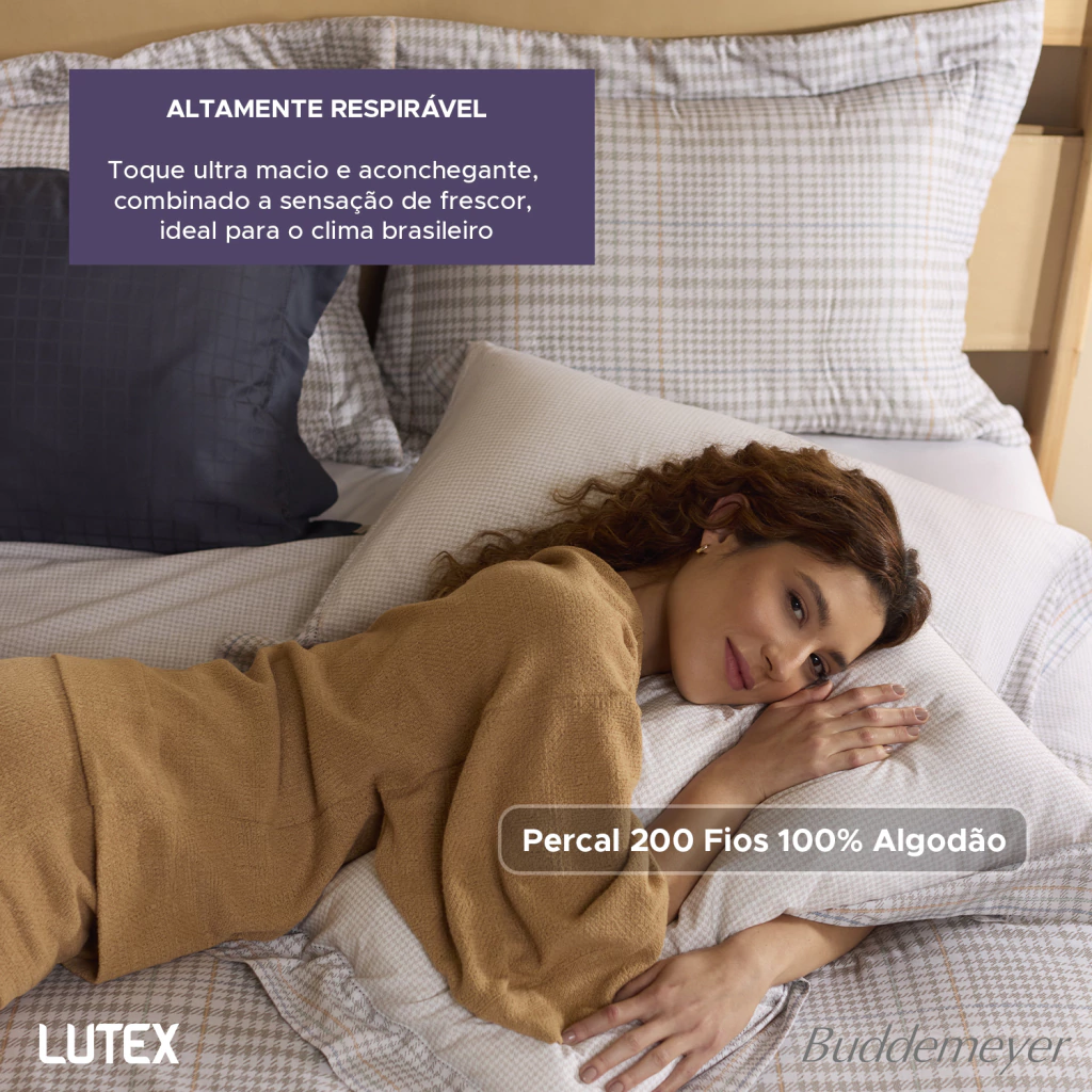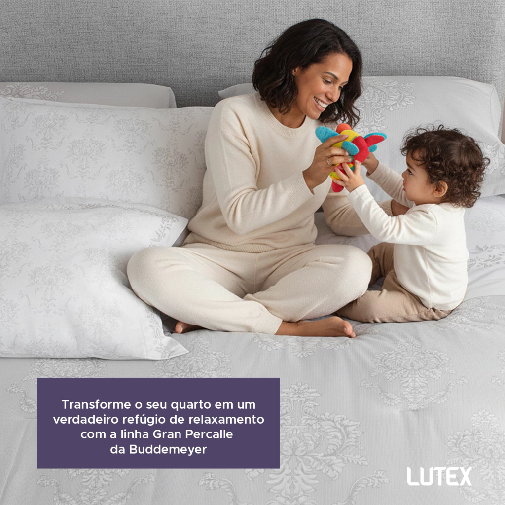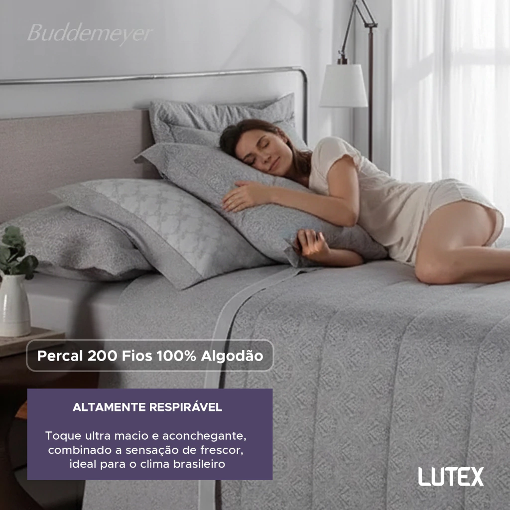 A Buddemeyer pensou em cada detalhe da linha Gran Percalle para tornar suas noites mais aconchegantes e sofisticadas. Confeccionada em percal 200 fios 100% algodão e com lençol de dobra feita, proporciona toque ultra macio, frescor e durabilidade, ideal para o clima brasileiro.