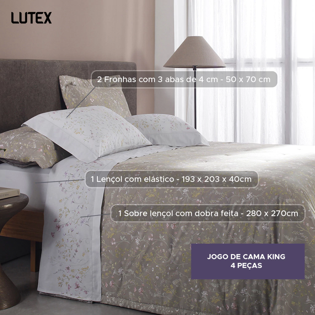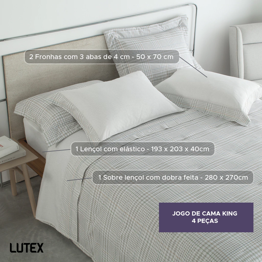 A coleção traz colchas e jogos de cama com estampas neutras e elegantes, criando um quarto harmonioso e acolhedor. O lençol com dobra feita complementa o conjunto com praticidade e estilo.