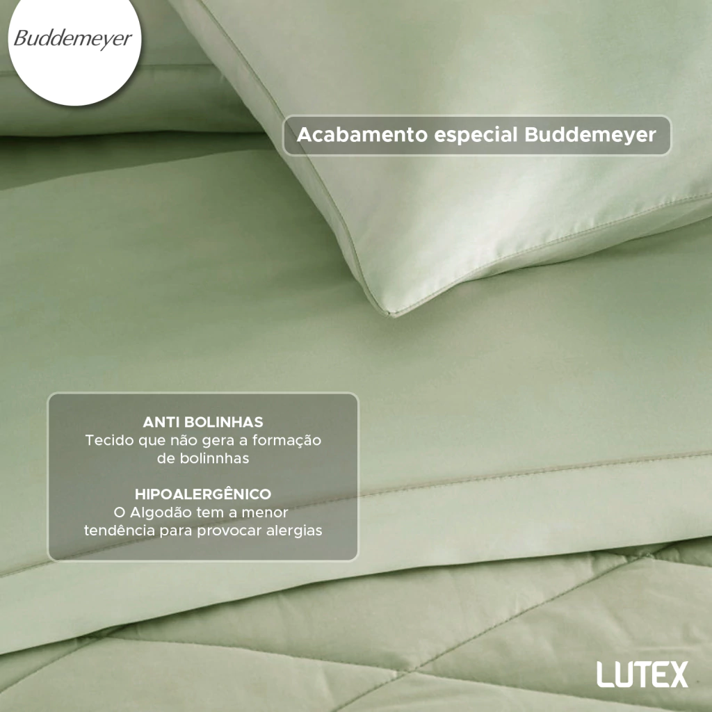 A linha de cama Buddemeyer Percalle 180 Fios é produzida em tecido 100% Algodão em fio penteado de fibras longas. As cores são firmes e o acabamento é primoroso, transmitindo serenidade e frescor no olhar.
