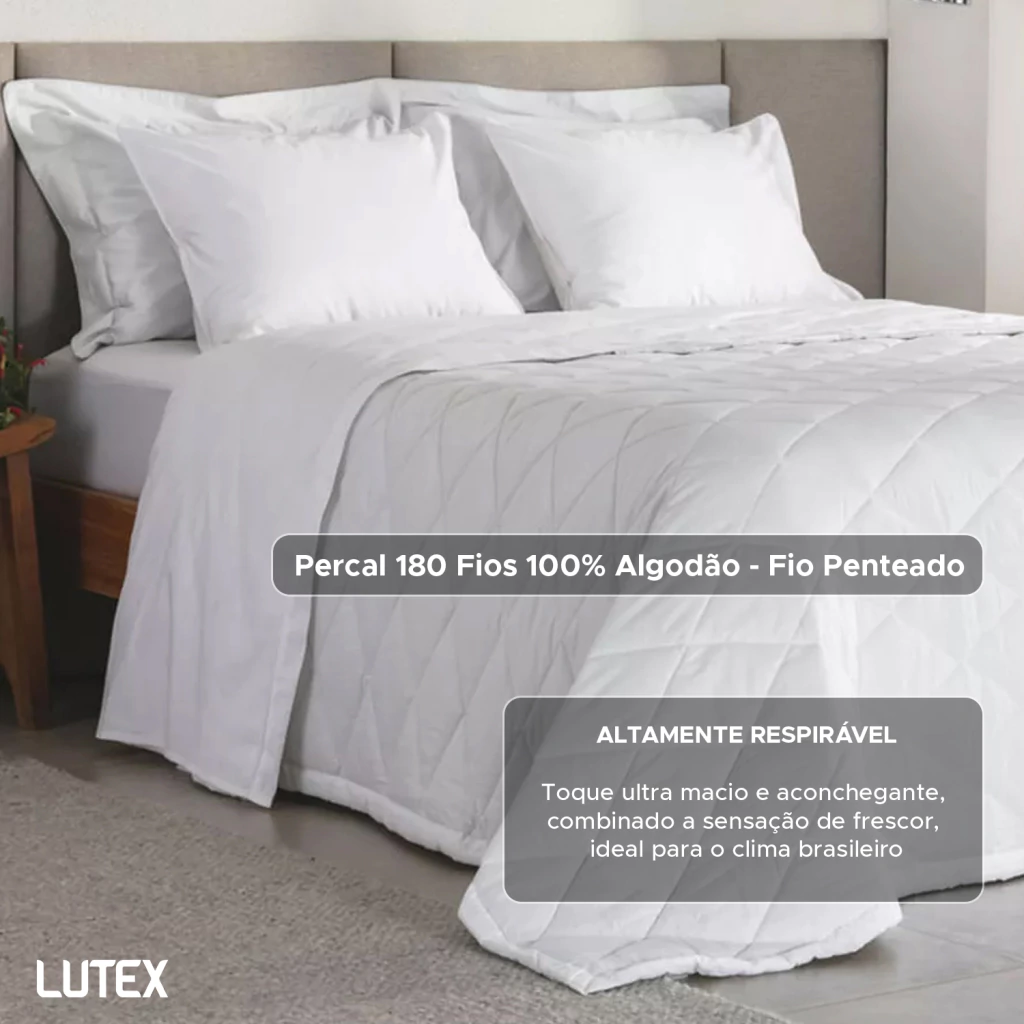 O tecido é confeccionado em Percal 180 Fios 100% Algodão, um tecido de trama bem fechada que resulta em toque ultra macio e aconchegante, combinado a sensação de frescor, ideal para o clima brasileiro.