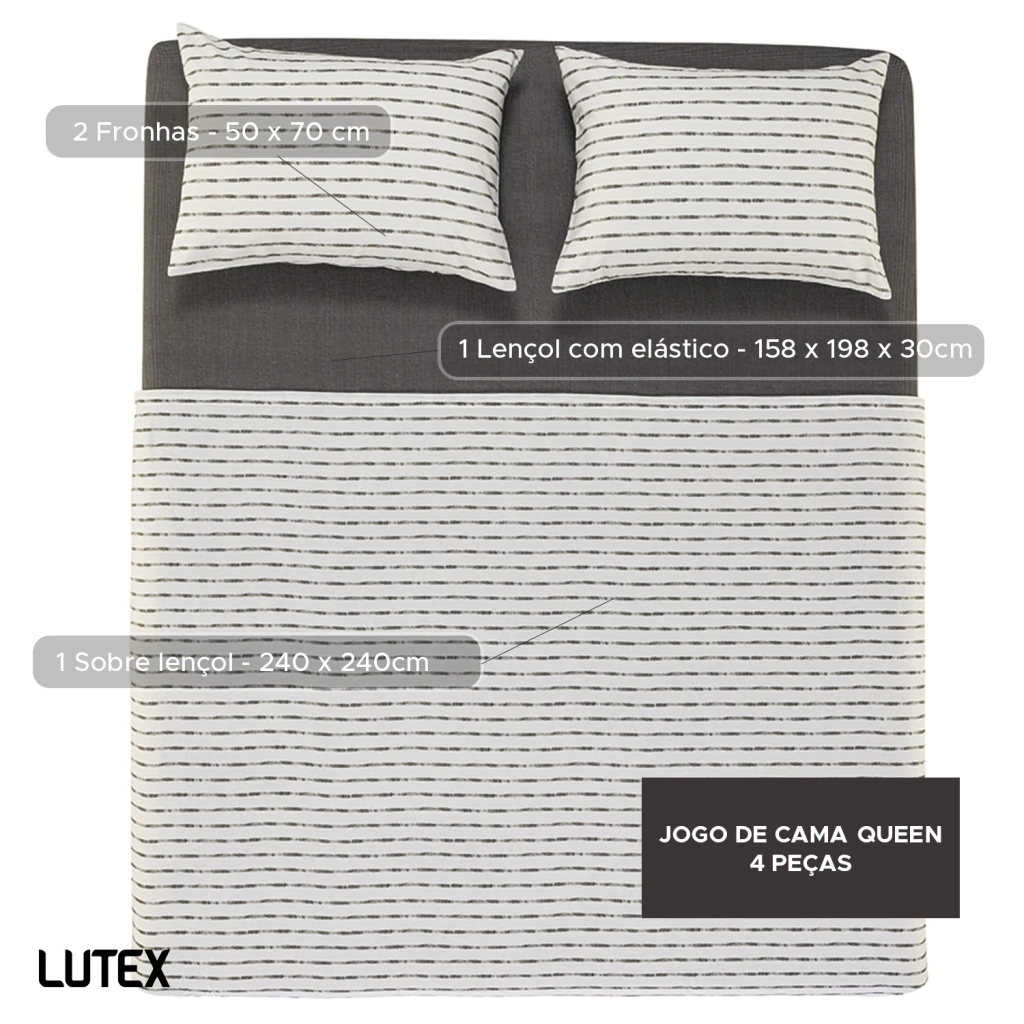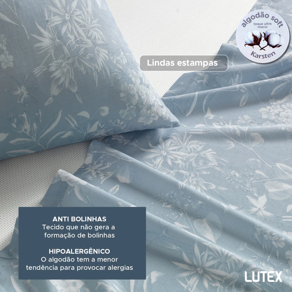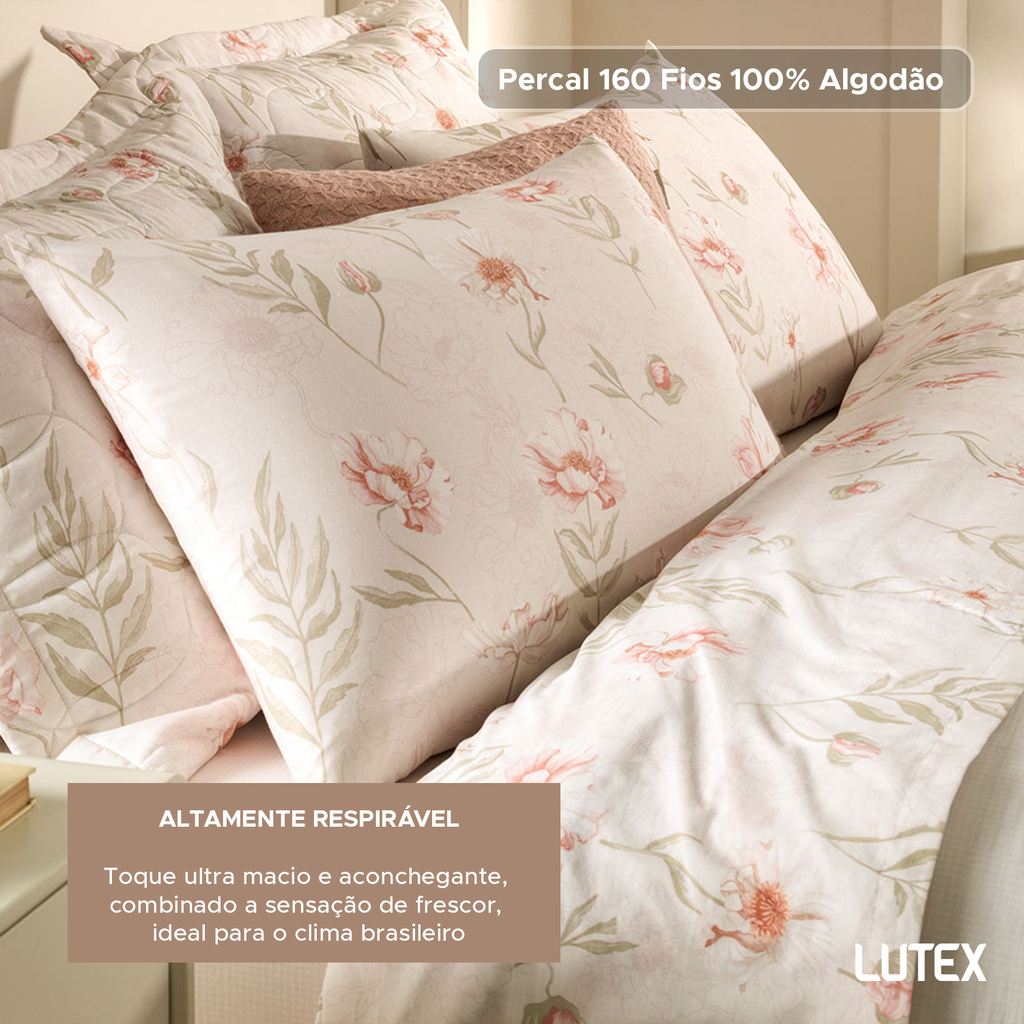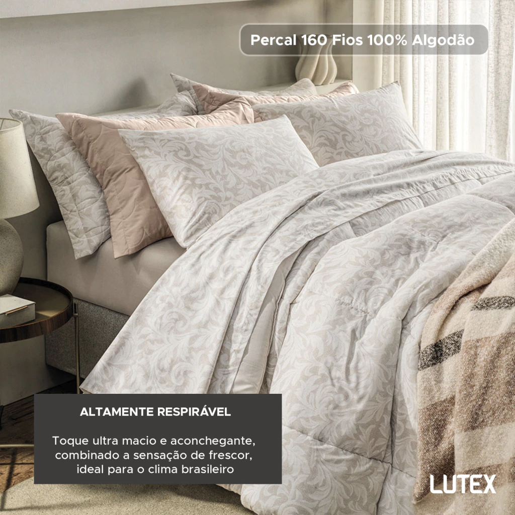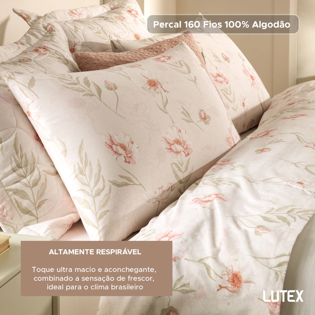 O tecido é confeccionado em Percal 160 Fios 100% Algodão, um tecido de trama bem fechada que resulta em toque ultra macio e aconchegante, combinado a sensação de frescor, ideal para o clima brasileiro.