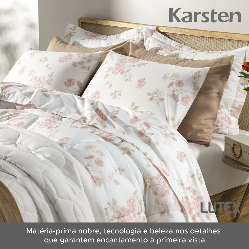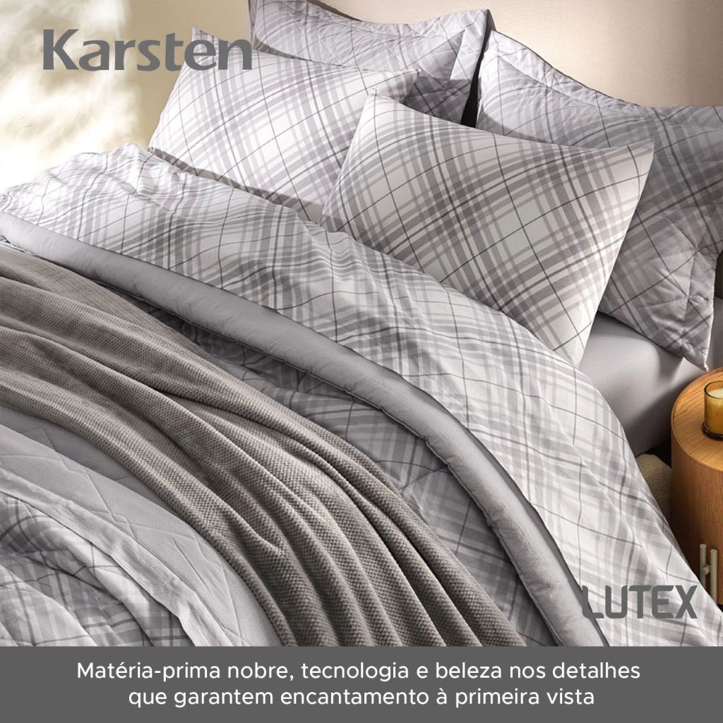 A linha de cama Karsten da LUTEX é resultado da combinação entre matéria-prima nobre, tecnologia e beleza nos detalhes que garantem encantamento à primeira vista.