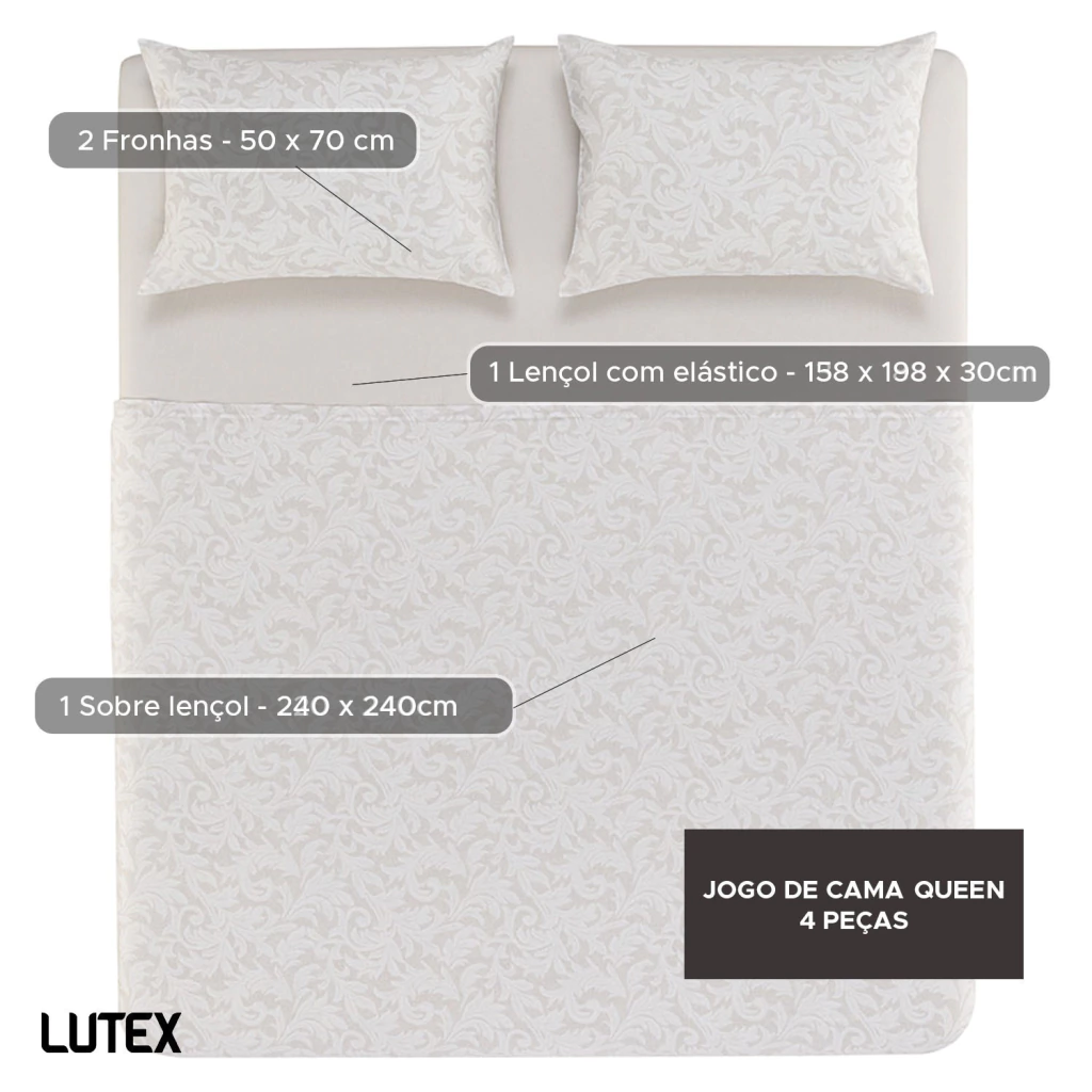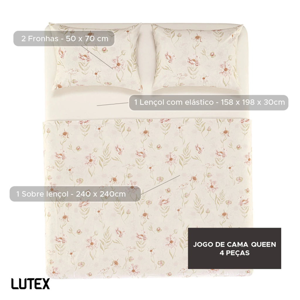 - 1 Lençol Queen com elástico estampado 100% Algodão 160 fios - 158 x 198 x 30 cm