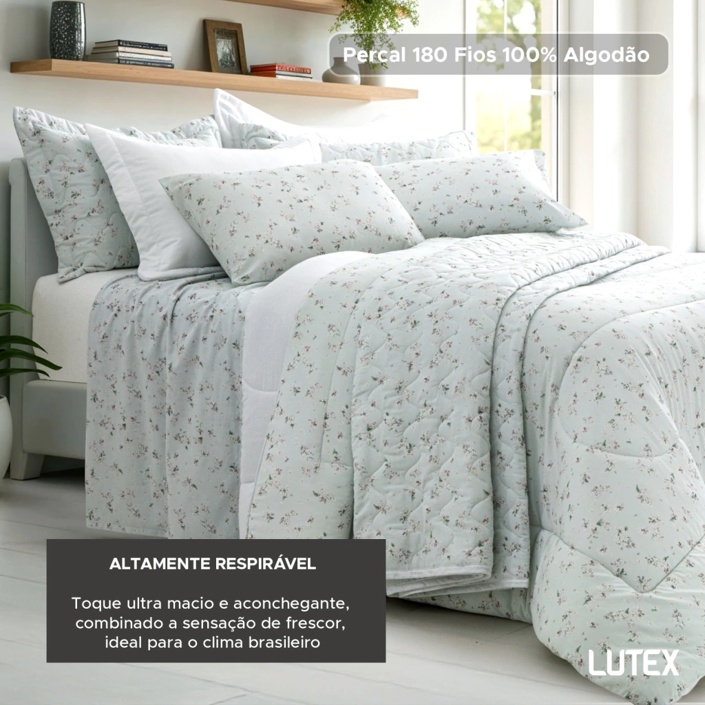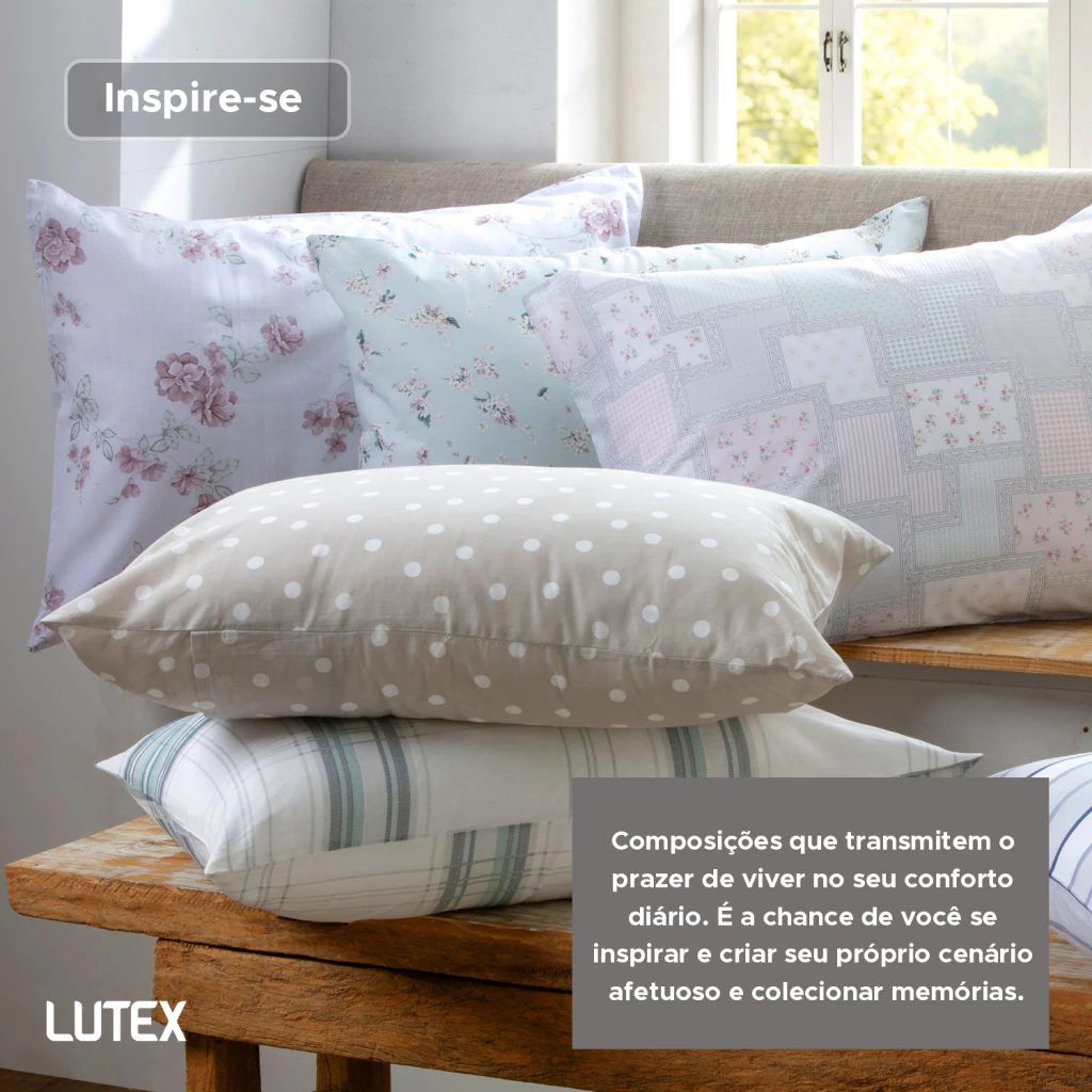O tecido é confeccionado em Percal 180 Fios 100% Algodão, um tecido de trama bem fechada que resulta em toque ultra macio e aconchegante, combinado a sensação de frescor, ideal para o clima brasileiro. Além disso possui tratamento anti-pilling, que evita a indesejadas bolinhas no tecido e é super facial de passar.