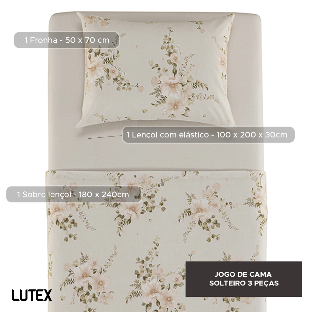 - 1 Lençol Solteiro com elástico estampado 100% Algodão 160 fios - 100 x 200 x 30 cm