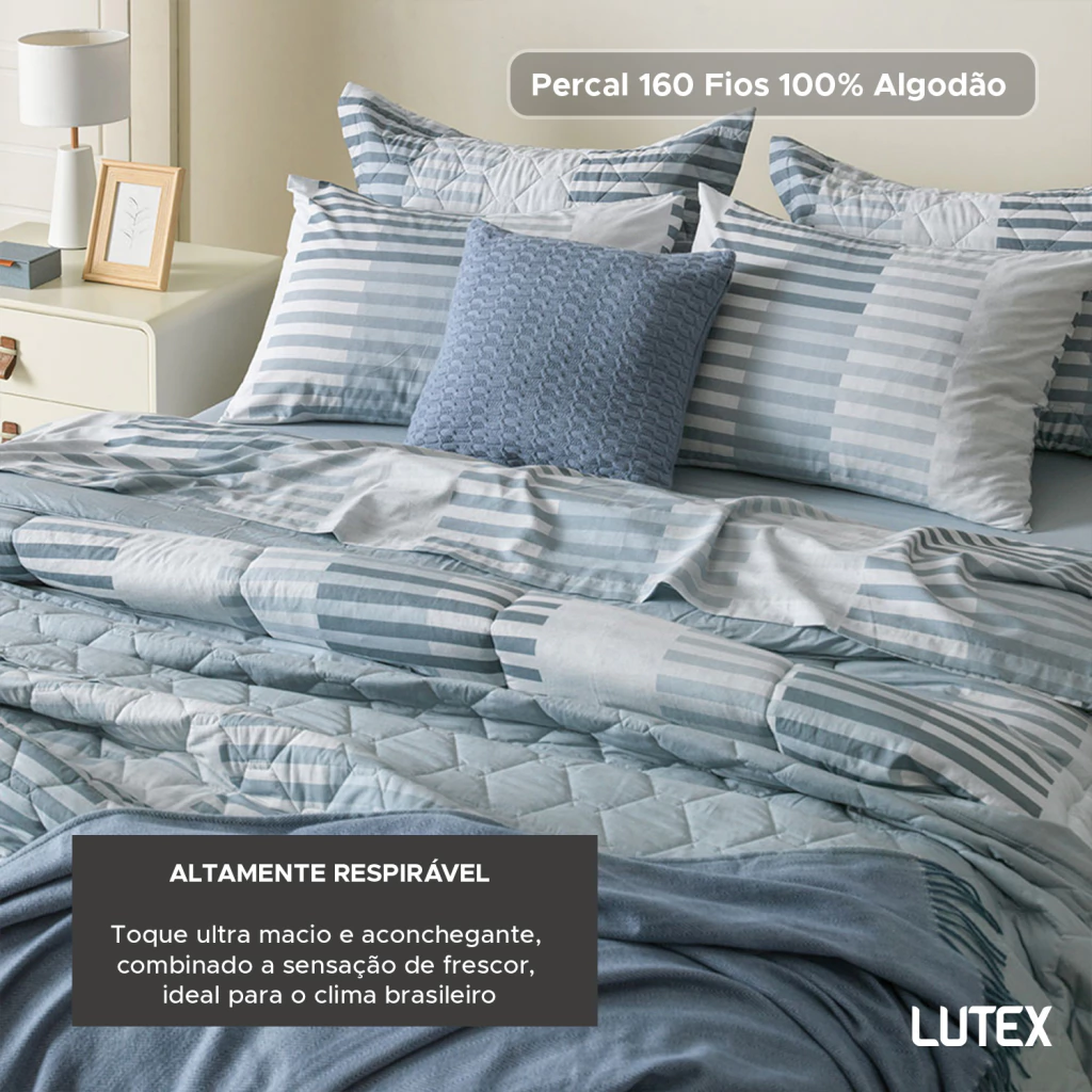 O tecido é confeccionado em Percal 160 Fios 100% Algodão, um tecido de trama bem fechada que resulta em toque ultra macio e aconchegante, combinado a sensação de frescor, ideal para o clima brasileiro.
