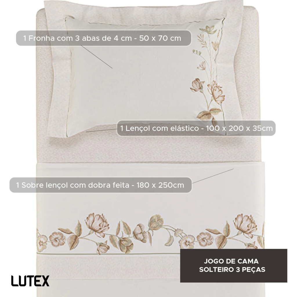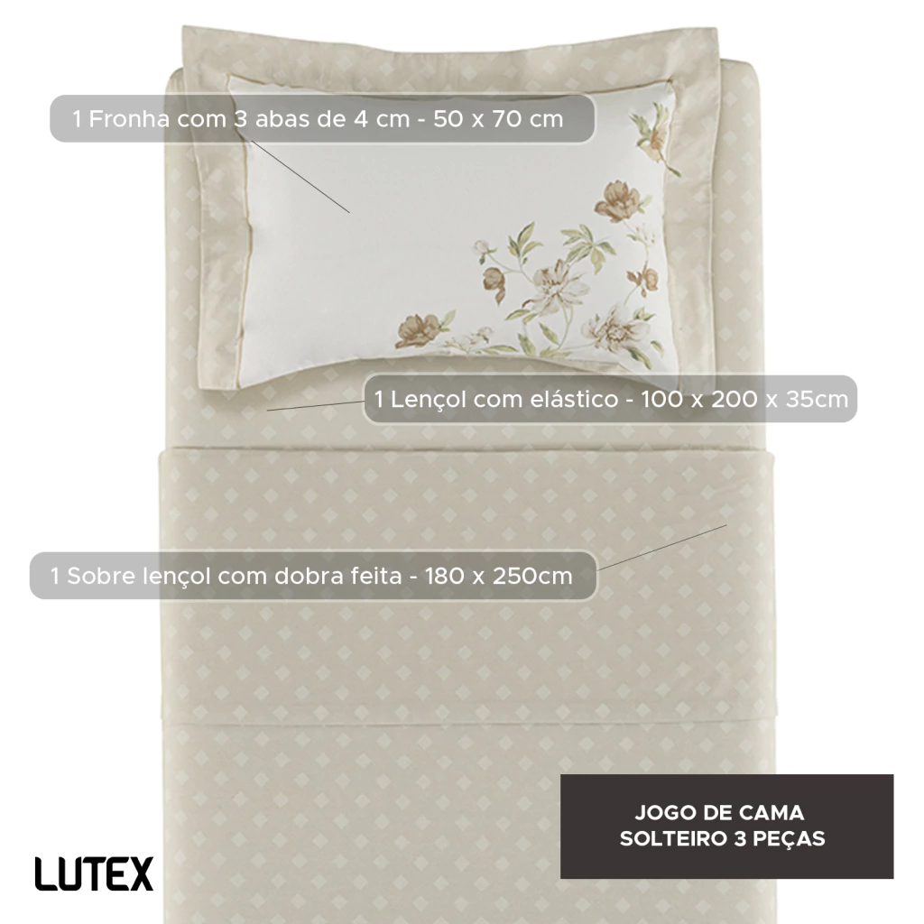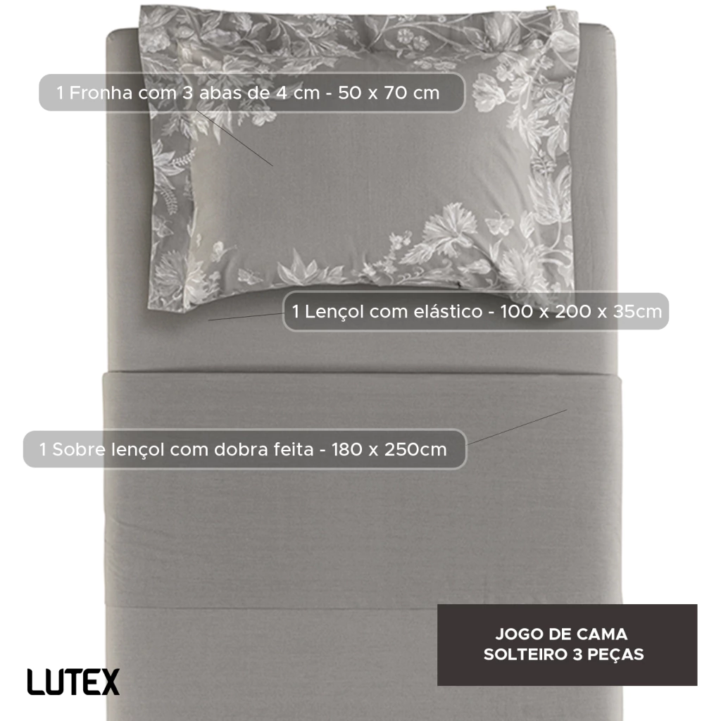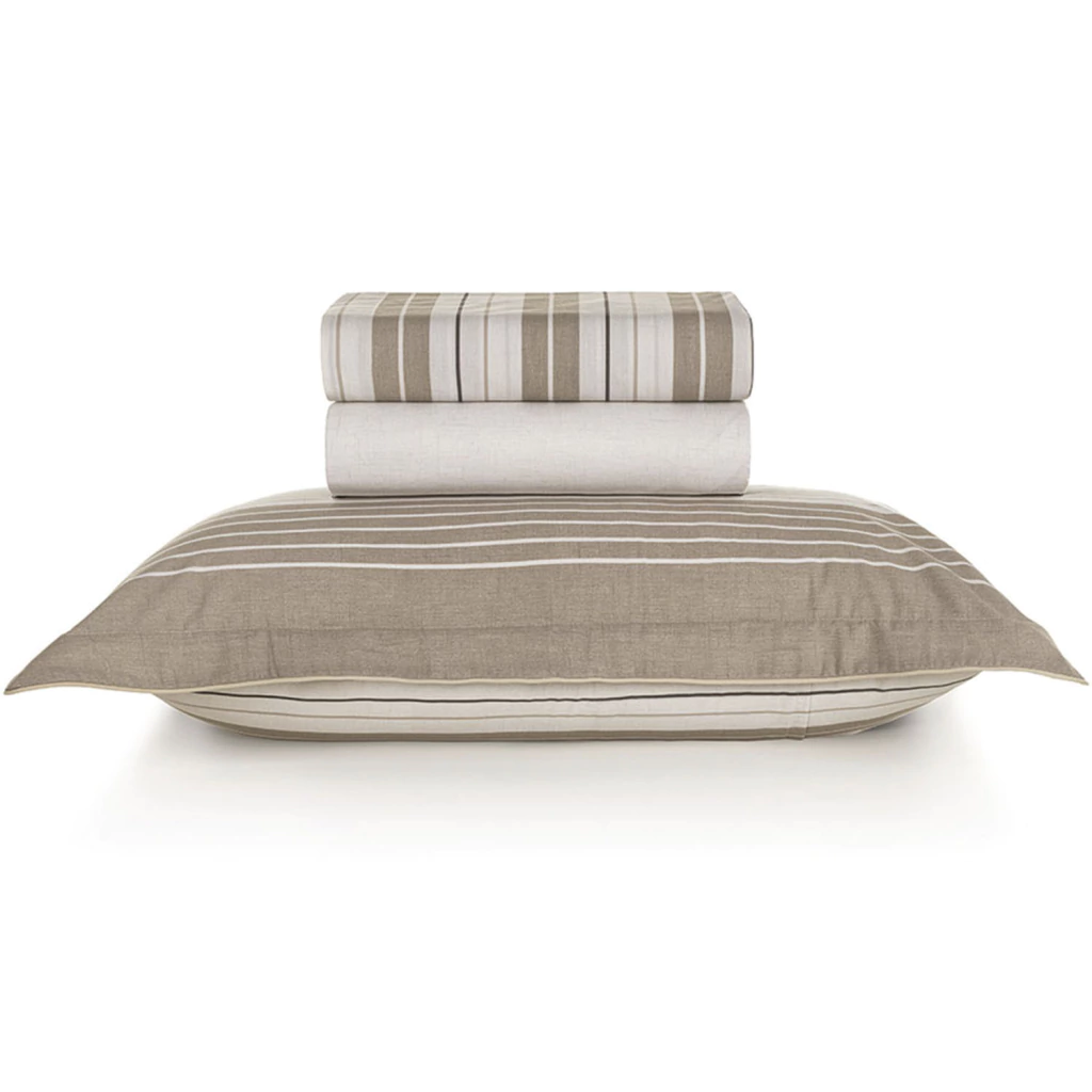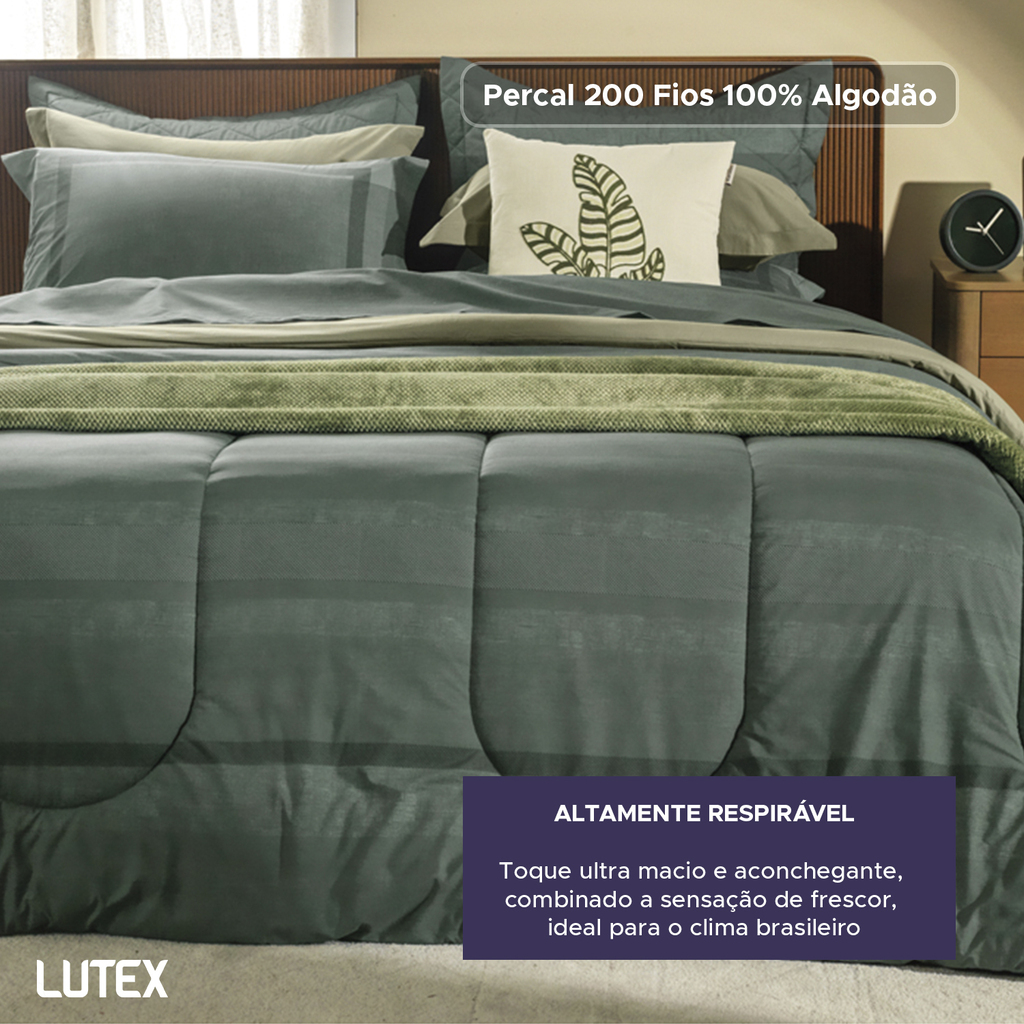 O tecido é confeccionado em Percal 200 Fios 100% Algodão, um tecido de trama bem fechada que resulta em toque ultra macio e aconchegante, combinado a sensação de frescor, ideal para o clima brasileiro.
