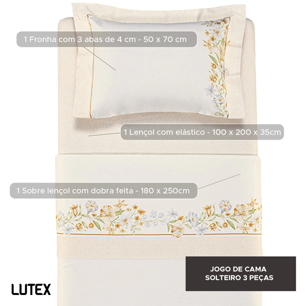 - 1 Lençol Solteiro com elástico estampado - 100 x 200 x 35 cm