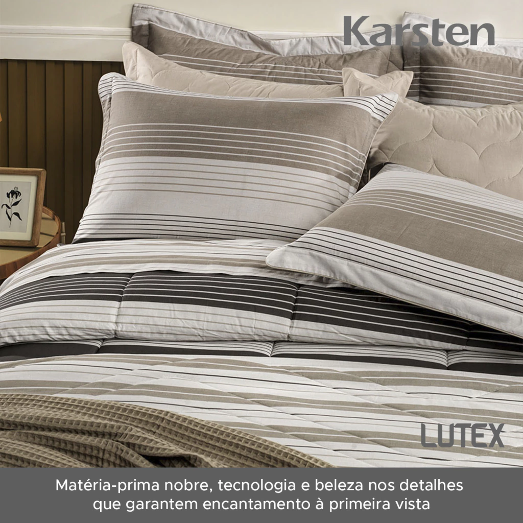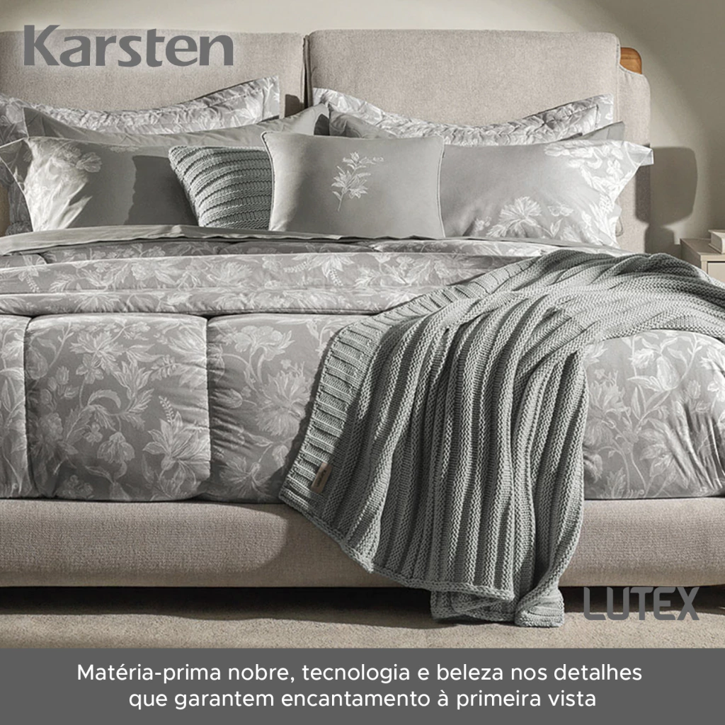 A linha de cama Karsten da LUTEX é resultado da combinação entre matéria-prima nobre, tecnologia e beleza nos detalhes que garantem encantamento à primeira vista.
