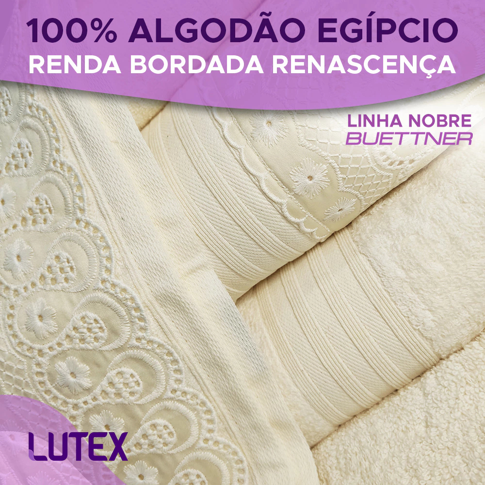 1 Toalha de Banho Gigante Renascença com aplicação em renda: 81cm x 150cm