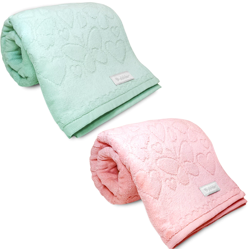 - 2 Toalhas de Banho Aveludada Romance Dohler Macia 100% Algodão 70 x 140