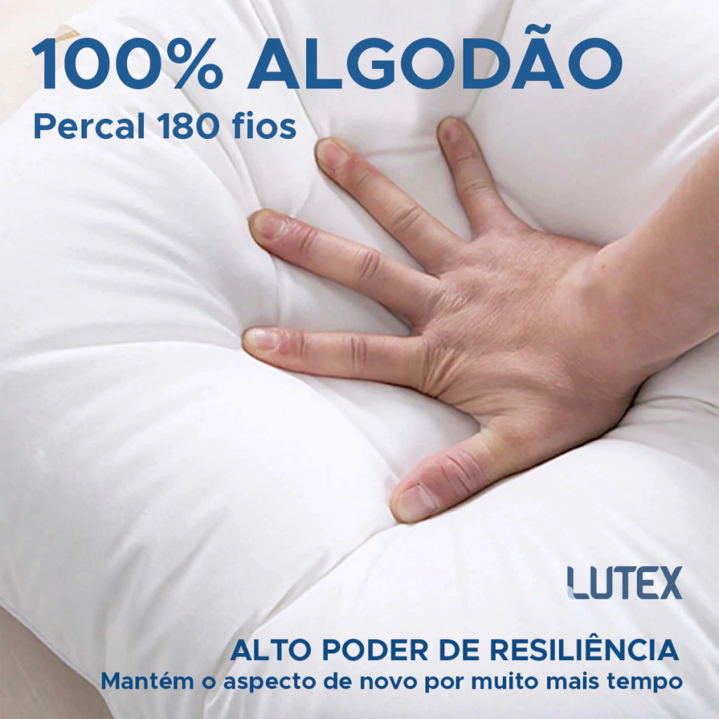 Indicado para quem dorme de lado, possui perfeito apoio na curvatura dos ombros. o Travesseiro Extra Firme possui revestimento em PERCAL 180 FIOS, 100% ALGODÃO, e seu enchimento é composto por fibra de poliéster.