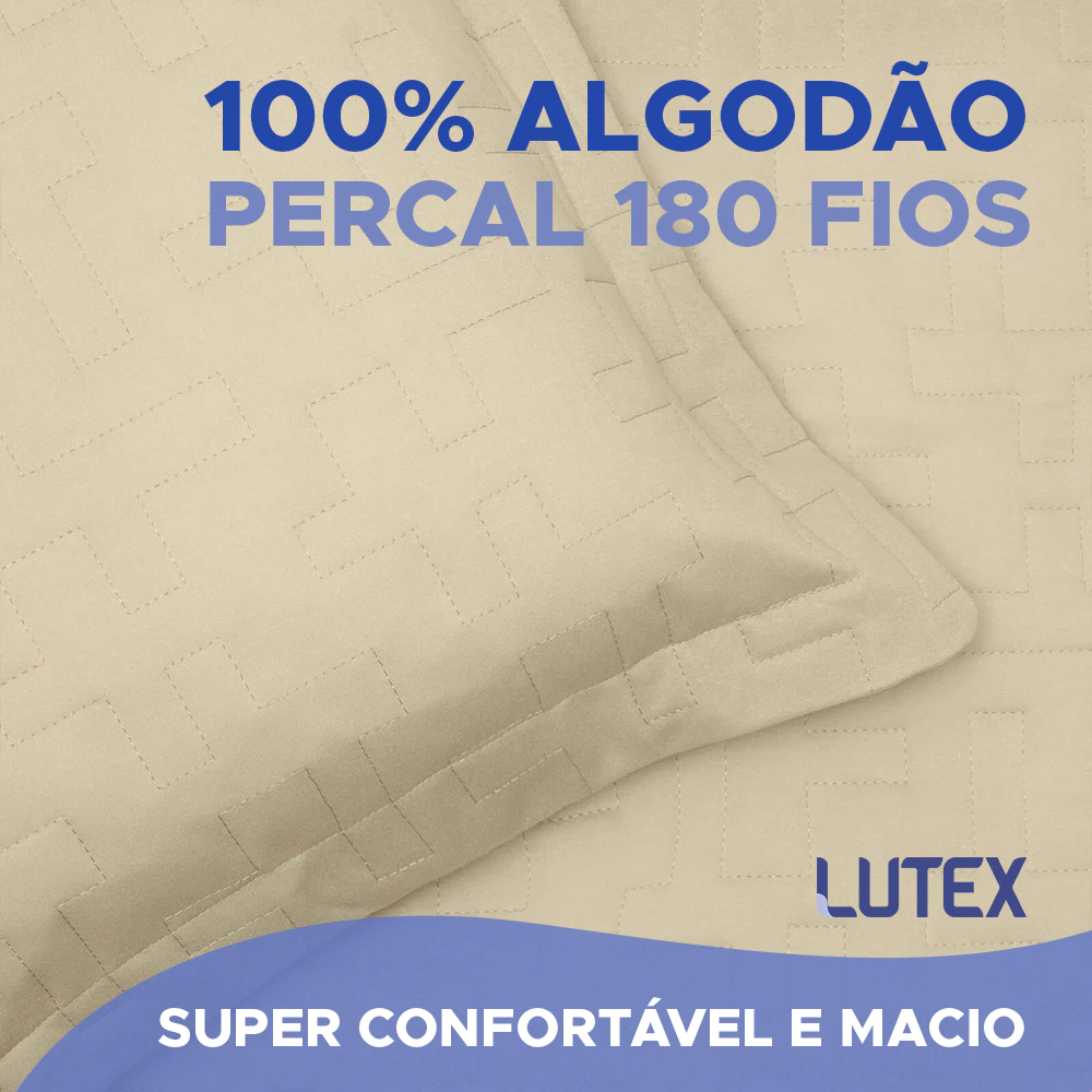 Altamente confortável, possui tecido superior em Percal 100% Algodão 180 Fios e enchimento em 100% poliéster, resulta em uma praticidade aliada à leveza, dispensando passar o produto e mantendo a cama sempre bem arrumada.
