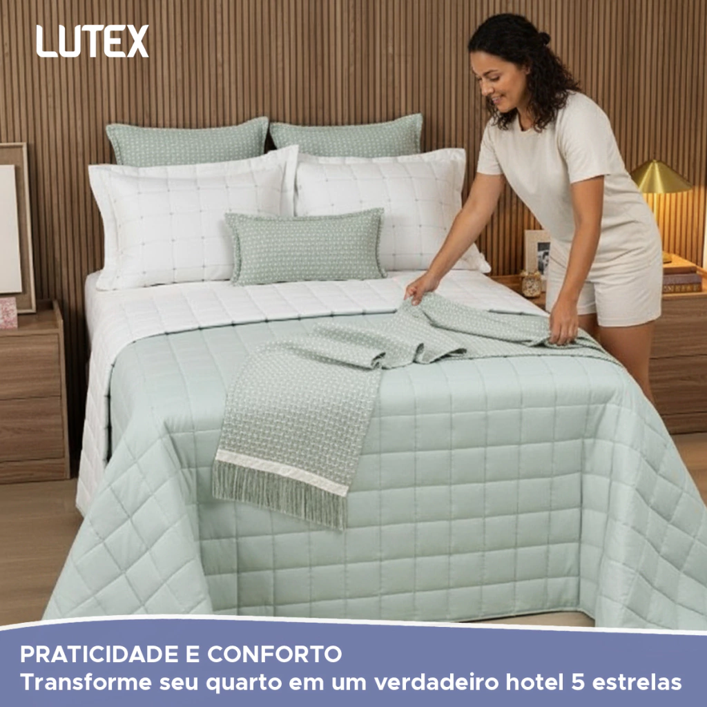 O cobre-leito dupla face permite alternar as cores conforme o seu estilo, criando diferentes composições com um único produto. O matelassado delicado e o acabamento refinado proporcionam um visual elegante e moderno, valorizando a decoração com praticidade e charme.