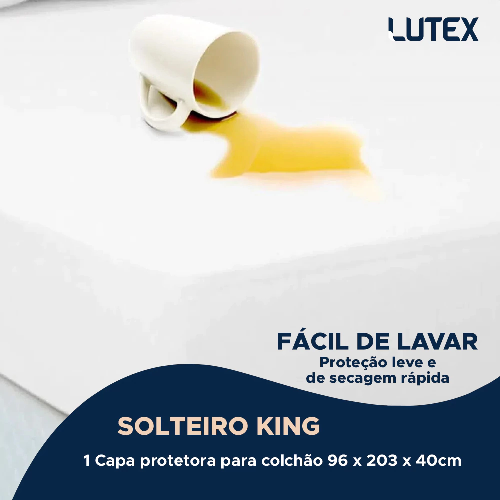 Confeccionado em malha 100% algodão com parte interna impermeável 100% poliuretano, que impede a passagem de óleos e líquidos para o colchão.