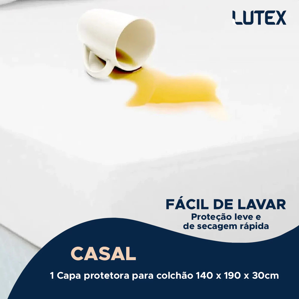 100% IMPERMEÁVEL: Com a tecnologia de impermeabilização fundida ao tecido 100% algodão, é super confortável, não esquenta e não faz barulho, pois não possui plástico. O Protetor de Colchão Kacyumara da LUTEX tem sua composição inteiramente em algodão e uma camada interna com poliuretano, que evita a passagem de líquidos e agentes externos. Possui Protect Pillow, que é um acabamento em saia, ajudando na proteção da lateral do seu colchão.