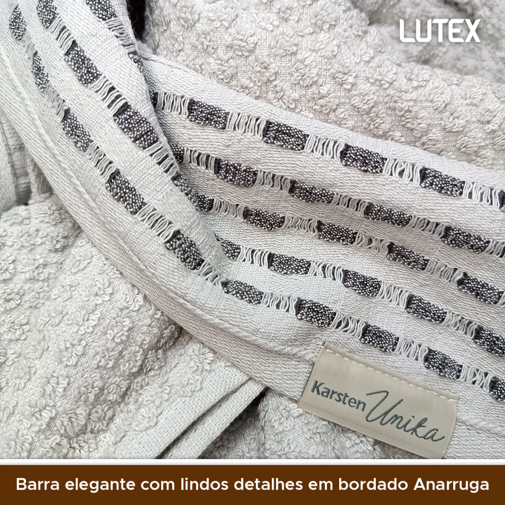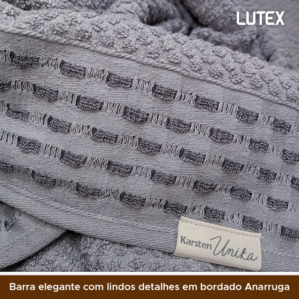 A linha de toalhas Karsten Chardon é confeccionada em tecido 100% algodão de altíssima qualidade. Sua alta gramatura de 430 g/m² com corpo felpudo em fio cardado proporciona ótima absorção e toque super macio e suave, além de promover ótima absorção e secagem eficiente. Suas cores modernas com estilo cosmopolita trazem o charme que seu ambiente precisa.