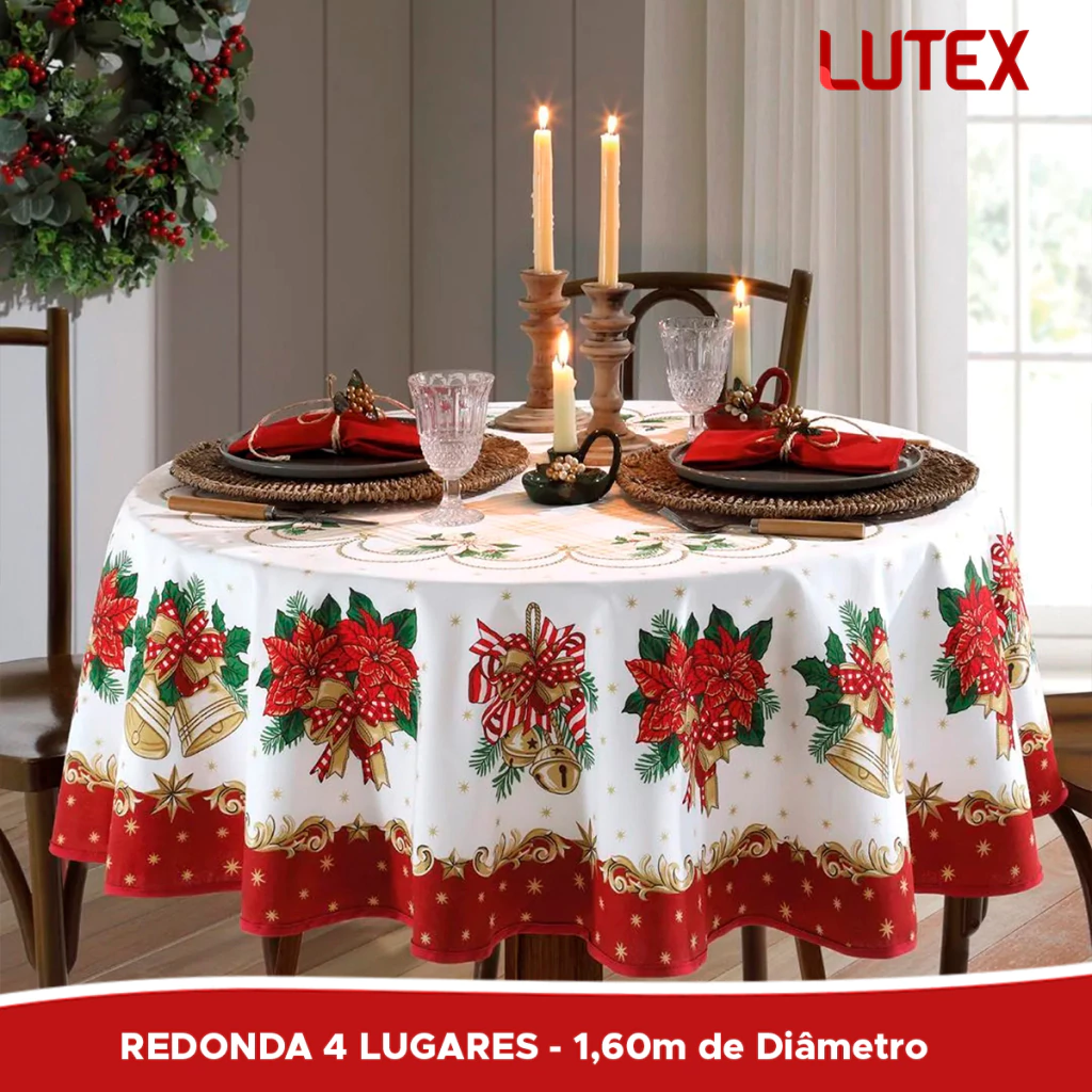 - 1 Toalha de Mesa Natalina Redonda 1,60 Athenas Dohler Natal - 4 Lugares