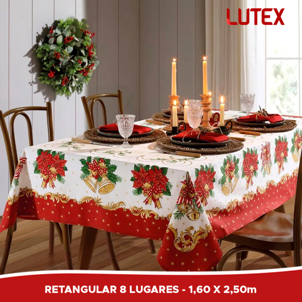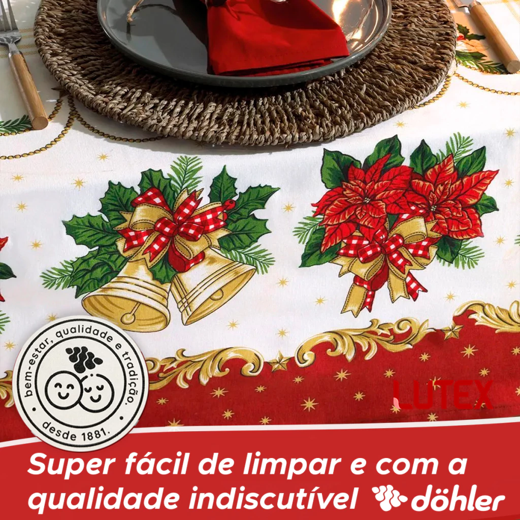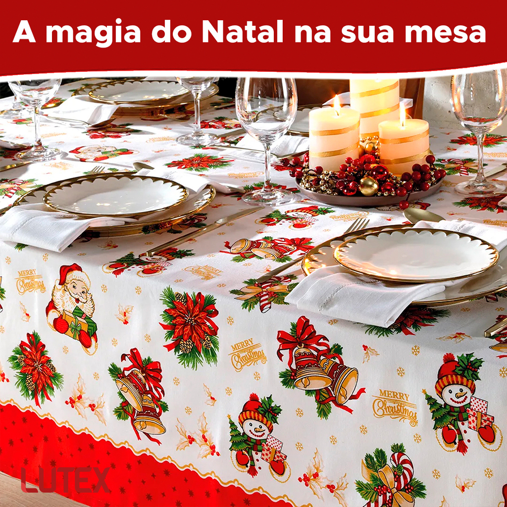 - 1 Toalha de Mesa Natalina Retangular 1,60 x 2,50 Athenas Dohler Natal - 8 Lugares