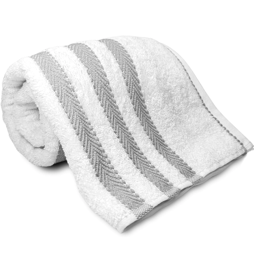 Volumosa e macia com qualidade e toque superior. Com cores marcantes e um barrado elegante trabalhado em listras, esta toalha promete transformar o seu banheiro em um verdadeiro luxo.